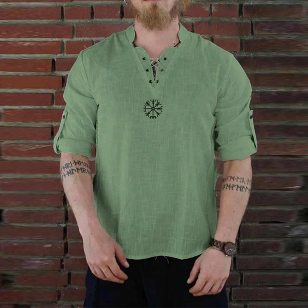 Для мужчин новый летний Стиль; Модная личность; Детская одежда из льна и хлопка с чистого шелка с длинным рукавом, Топ