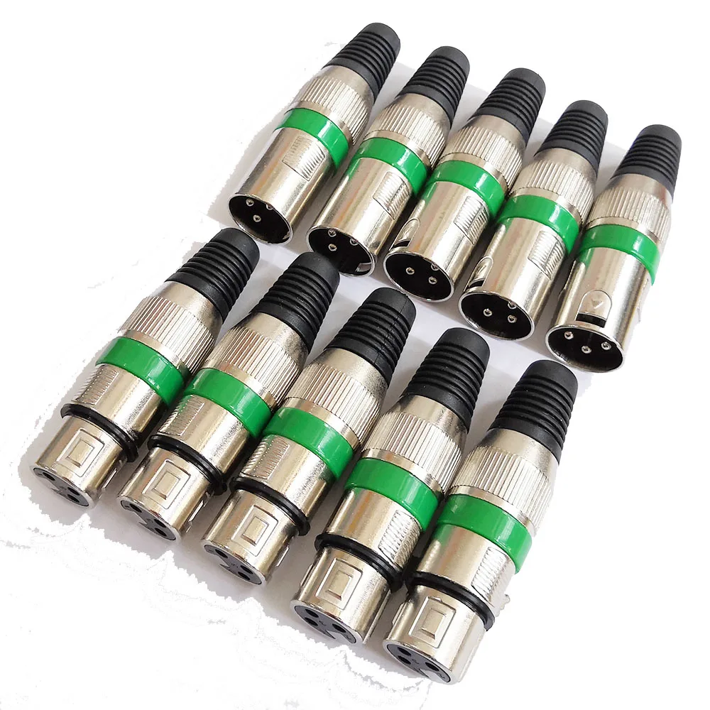 3-контактный разъем XLR Мама + штекер 3-полюсный разъем XLR разъем микрофона зеленый цвет 10 шт./лот
