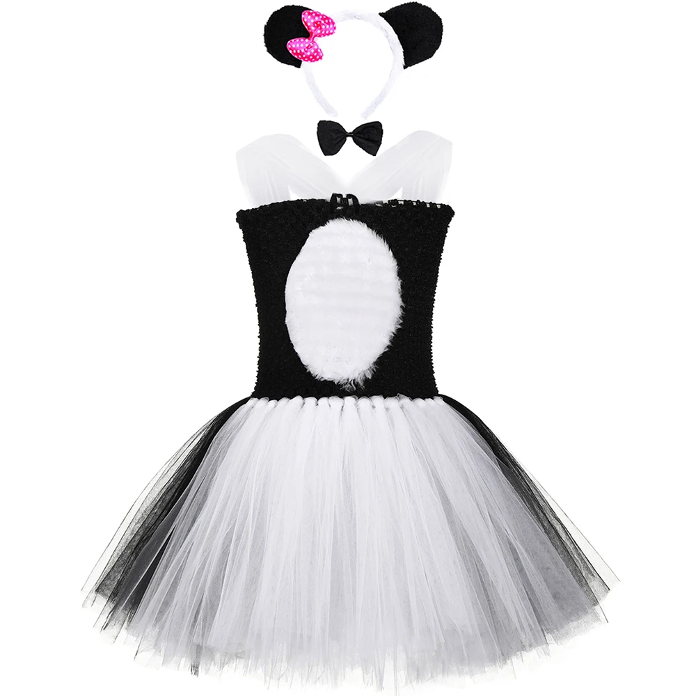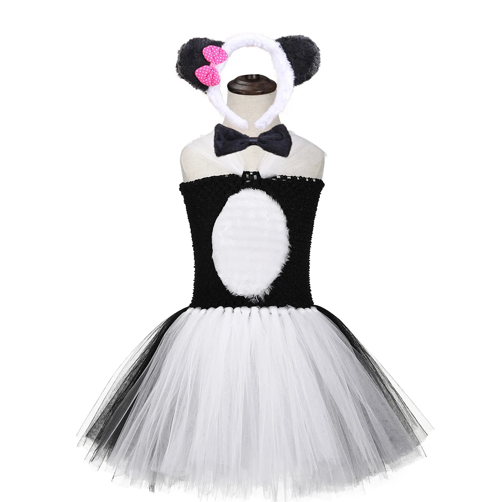 Набор с платьем-пачкой в виде панды и медведя, черно-белый милый костюм для костюмированной вечеринки с изображением животных из зоопарка для девочек, вечерние костюмы на Хэллоуин