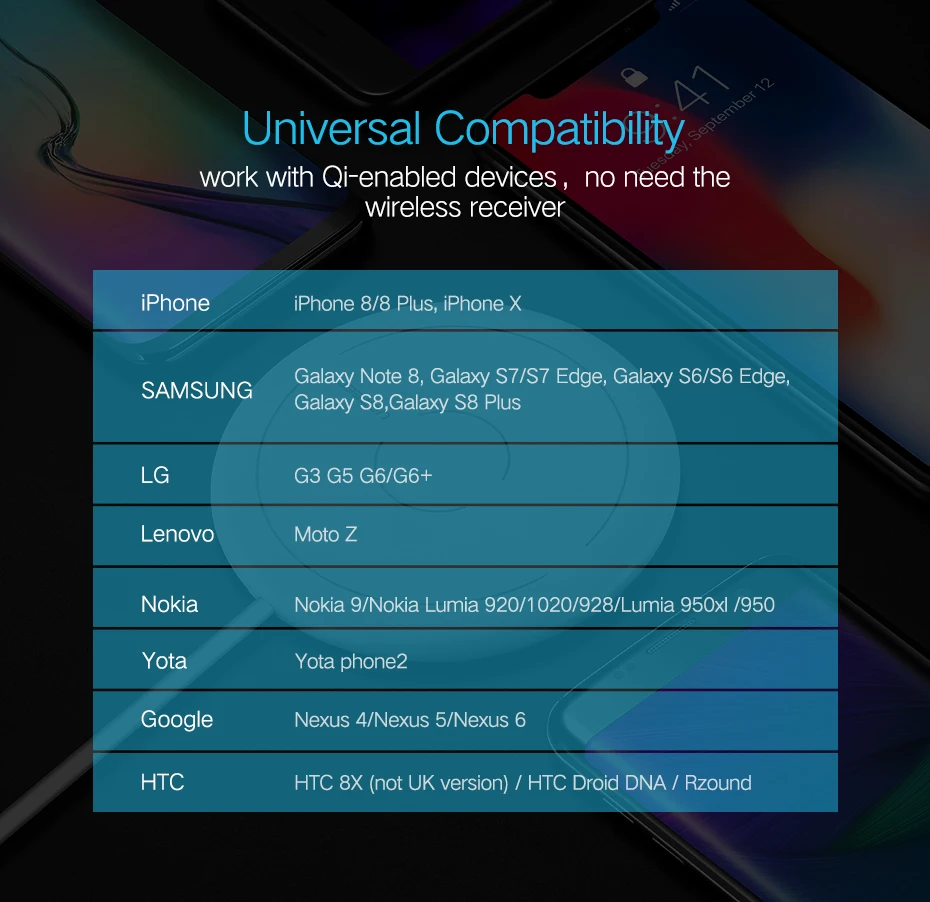 Особенности: Новейшая модель 2018 года, 100% абсолютно новая и высококачественная; Высокая мощность и быстрая зарядка; защита от короткого замыкания для приемника, чтобы избежать перегрева, безопасный и надежный; Ультратонкий, легкий, портативный, подходит для дома, офиса, общественных мест и так далее; Характеристики: Материал корпуса: АБС-пластик Модель: KC-N5 Название продукта: Быстрое беспроводное зарядное устройство Вход: 9 В 1,67 А Выход: 9 В 1,67 А Ток зарядки: 1 500 мА Интерфейс: Micro USB Расстояние зарядки: 2-6 мм Эффективность преобразования: более 70% Частота зарядки: 100-200 кГц Стандарт: стандарт беспроводной зарядки QI Сертификация продукта: CE \ FCC \ RoHS Совместимость: Совместимость со всеми стандартными приемниками QI Цвет изделия: черный, белый Размер изделия: 100x100x10 мм/3,94x3,94x0,39 дюйма Вес нетто: 54 г Вес брутто: 104 г Упаковка продукта: 1 х Беспроводное зарядное устройство для зарядки 1 кабель для передачи данных