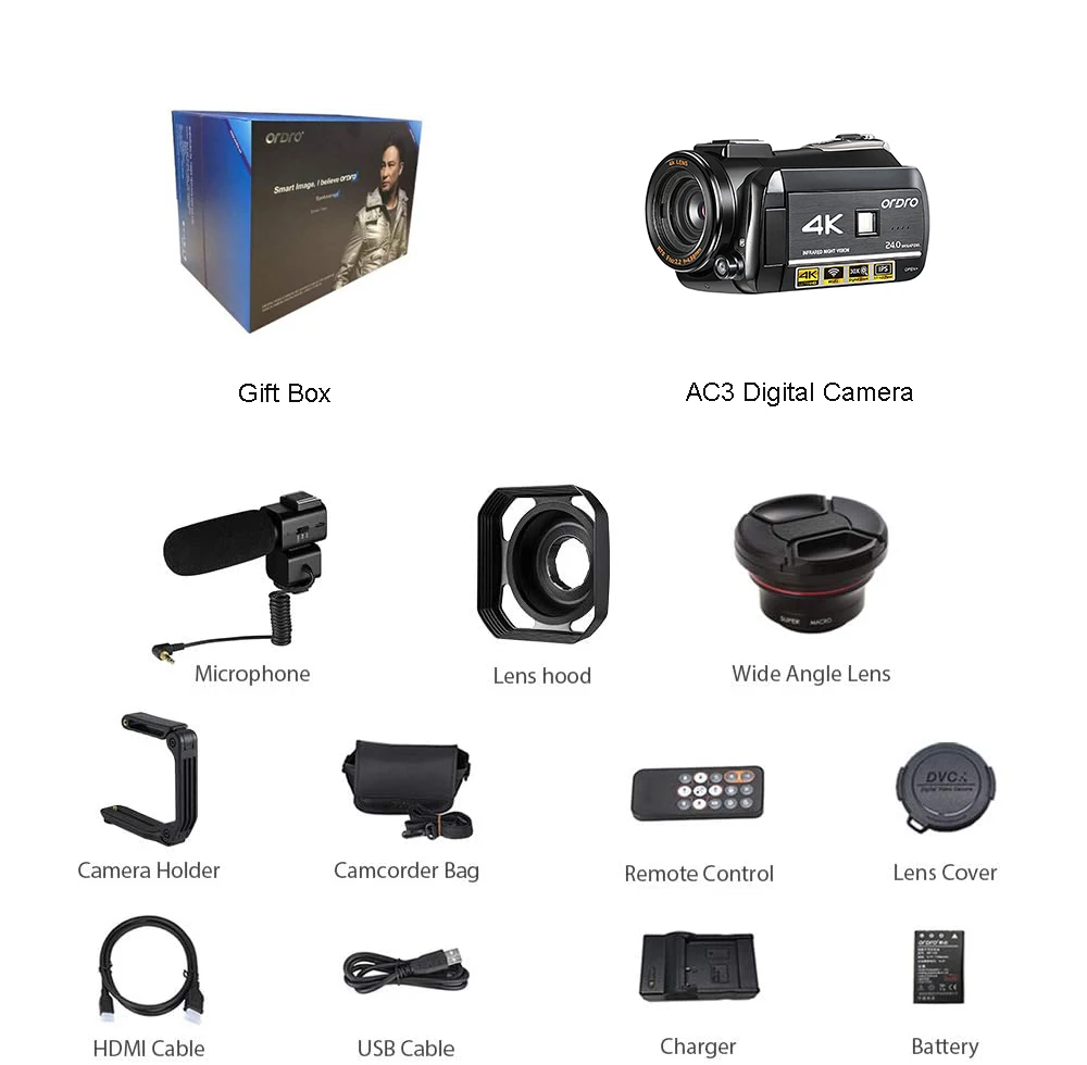 С разрешением 4K ultra HD, ORDRO HDR-AC3 может выполнять чрезвычайно высокое качество изображения и запечатлеть прекрасный момент.