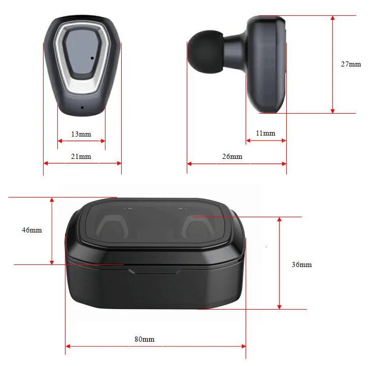 1. Bluetooth-чип и версия Bluetooth: Blue Flood in Zhongke8832A(Bluetrum Technology8832A)v5.0 + eur 2. Протокол Bluetooth: HSP1.2, HFP1.6, A2DP1.3, AVRCP1.5 3. Вход питания (вход питания): 3,2 V-4,2 V 4. Выход (выход): 30 мВт 5. Состояние нагрузки (нагрузка) : 32 Ом/φ8 6. Номинальная мощность (мощность): 74 МВт 7. Батарея наушников: одна батарея side70mAh model501515Polymer литиевые батареи с защитными пластинами 8. Аккумулятор аккумуляторной коробки: 500 мА · ч батарея model902030полимерные литиевые батареи с защитными пластинами 9. Мощность зарядки: earphone5v / 120maCharge box5V /320mA 10. Расстояние передачи: 10 11. Частота: 2,4 ГГц-2,48 ГГц 12. Время вызова: 5 часов 13. Время прослушивания песни: 5 часов 14. Время работы в режиме ожидания: approx.180h 15. Вес одной гарнитуры:(g) вес зарядного устройства: 4(g)