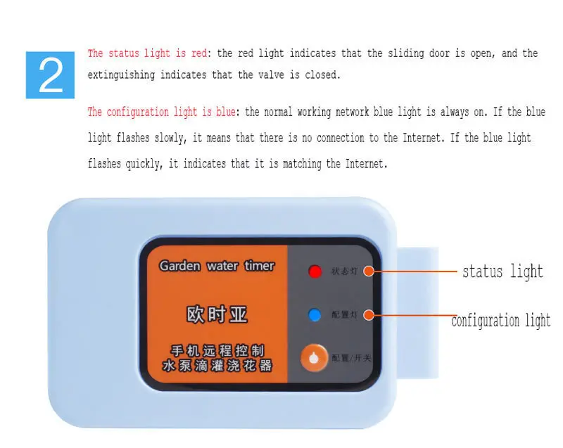 Светильник конфигурации синий: Нормальный рабочий сетевой синий светильник всегда включен. Если синий светильник медленно мигает, это означает, что нет подключения к Интернету. Если синий светильник быстро мигает, это означает, что он соответствует Интернету.