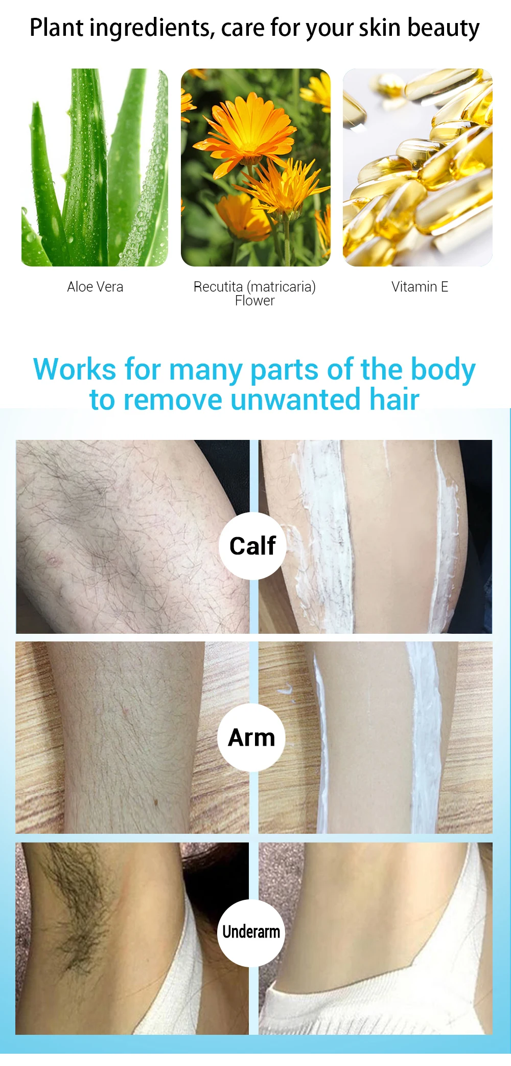Effects: Painless hair removal at home with results that last longer than shaving, unwanted hair can easily removed by a spatula.
