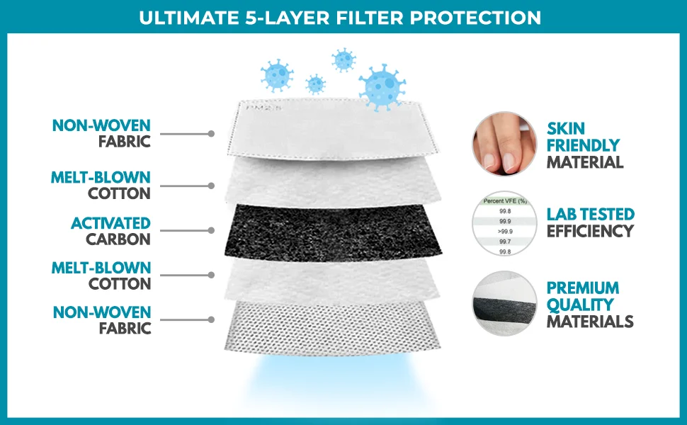 Сменные активные угольные фильтры помогают блокировать пыль, пыльцу, испарения, тяжелые металлические частицы и т. д.