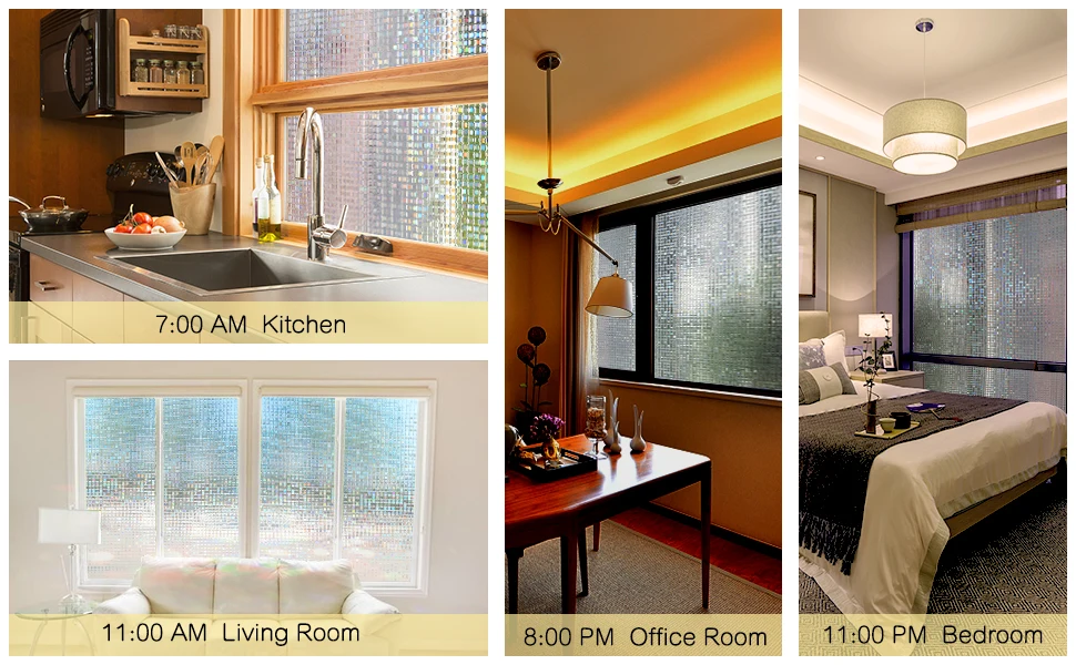 Color: White Size: 30/45/60/75/90x100cm 30/45/60/75/90x200cm 30/45/60/90x500cm Material: PVC Characteristic: 3D window film, in the sun, it can present different color. Decorative effect: 5 stars, good for your home and office decoration. Privacy effect: Not recommend to use it on the place where need high privacy protection. Note: This product is 3D window film, the product itself is colorless and depends on the reflected light to present different colors. Effect: The colors that reflect on your walls from the rainbow prism effects are pretty to look at in daylight! And at night, the cars, whether it's headlights or taillights, it all looks like a holiday in your window! Create a cool visual for you. Suitable for your bedroom, living room, Kitchen, lounge, office decoration. At the same time, anti-UV, protect your furniture from fading.