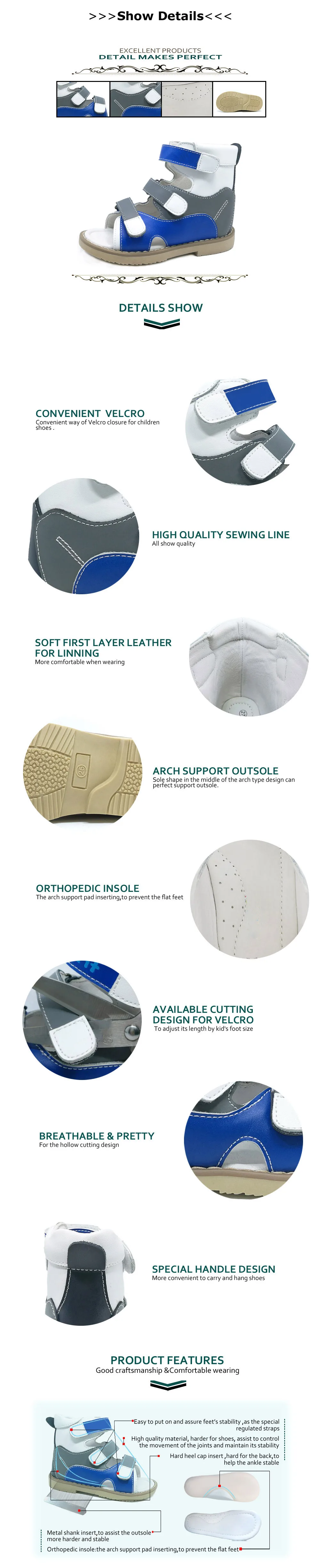 1. Какие ортопедические туфли? Ортопедическая обувь-это медицинская обувь, предназначенная для предотвращения и коррекции патологии стопы, может защитить суставы стопы и исправить деформацию стоп, чтобы помочь здоровому росту суставов детских ног. 2. Каковы особенности ортопедической обуви? 1) прочные и прочные удлиненные задние колпачки стабилизируют ноги в правильном положении. 2) мягкие внутренние воротники обеспечивают гладкий контакт кожи с краями обуви во время движения. 3) стелька с супинатором и подошва с каблуком Томаса обеспечивают поддержку ног. 4) застежки-липучки плотно и надежно фиксируют ноги внутри обуви. 3. Каковы функции ортопедической обуви? Для предотвращения и лечения ортопедических отклонений. Для предотвращения и коррекции плоскостопия детей, варусная стопа, вальгусная стопа, супинатор, пронатор, косолапость, х/о нога и т. Д. 4. Подходит ли для обычной стопы ортопедическая обувь? Да, нормальные здоровые ноги также подходят для ношения ортопедической обуви. Ортопедическая обувь очень важна для первых шагов ребенка, она фиксирует стопу, увеличивает область поддержки стопы и перераспределяет нагрузку тела, избегая деформации стопы, чтобы помочь нормальному здоровому росту ног. Поэтому родитель должен начать выбирать ортопедическую обувь для ваших детей, когда ребенок учится ходить.