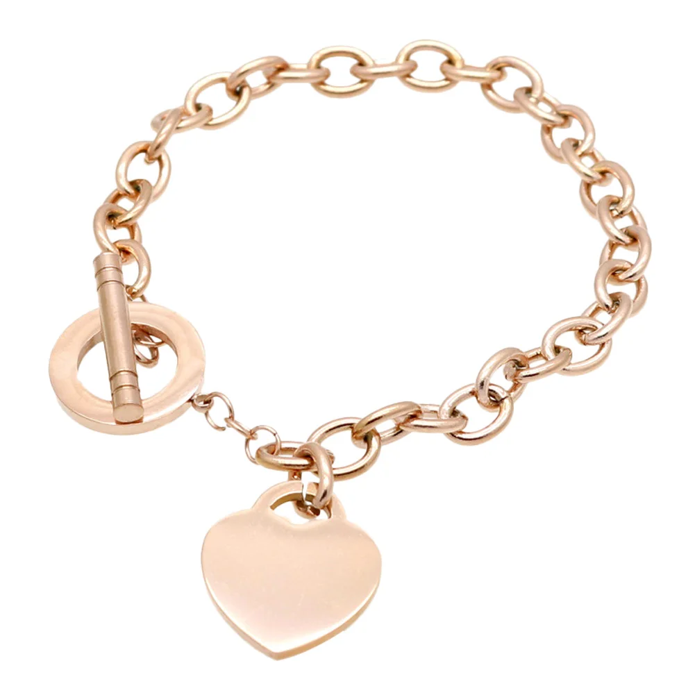 Особенности: Материал: титановая сталь Пол: Для женщин Узор: в форме сердца Цвет: серебристый, розовое золото, золото Размер: 18 см, ширина сердца: 14 мм