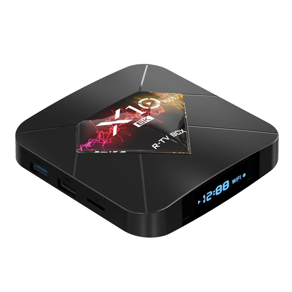 R-TV BOX X10 PLUS Smart Android TV Box может изменить ваш традиционный телевизор и ЖК-монитор в мультимедийный центр, подключив интернет (через WiFi или RJ45). Эта умная ТВ-приставка Android принесет вам много удовольствия и удобства благодаря своей мощной функции: Android 9,0, Allwinner H6 Quad core A53 CPU, Mali-T720 GPU, 4 Гб RAM и 32 Гб ROM, 4K UHD видео выход, 2,4G WiFi. Просто подключите его к телевизору, и вы готовы к работе!