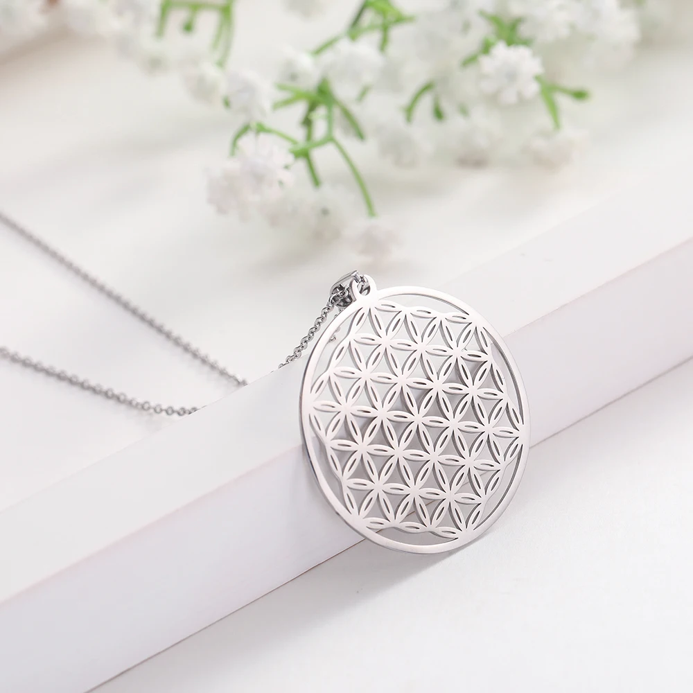 LIKGREAT, винтажное ожерелье в виде цветка жизни, кулон в виде мандалы, ювелирное изделие из нержавеющей стали, Священная геометрия, Женские аксессуары, амулет, подарки