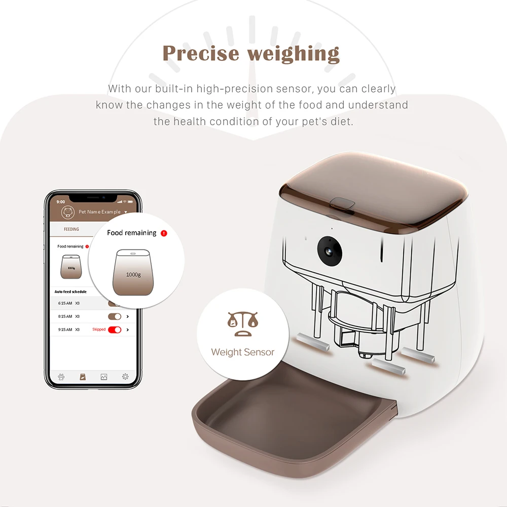 1. Настраиваемые Сроки приема пищи:Программа до 11 блюд для кормления вашего питомца и #39;s расписание, каждый прием пищи от 1 до 99 порций и каждая часть составляет около 5g или 0,176 унций, идеально подходит для большинства домашних животных и #39;s уникальные потребности в питании. Опция подачи вручную позволяет кормить вашего питомца вне нормального времени кормления. Оптимальный график кормления и контроль веса, позволяет кормить вашего питомца вовремя, даже если вы заняты или находитесь на улице. 2. Приложение с поддержкой Wi-Fi и камера #38;1080p-Просто загрузите приложение «pet Partner» и подключите smart auto feeder к вашему дому и беспроводному маршрутизатору #39;s, вы получите питание, чтобы питаться и контролировать питание вашего питомца в любое время, В любом месте вашей ладони. 1080P full HD прямая трансляция на ваш смартфон днем или ночью с ночным видением. Работает с 2,4 ГГц сети Wi-Fi (не поддерживает Wi-Fi 5 ГГц) 3. Надежный дизайн-Вмещает до 3,3 л сухого корма для собак или кошек, чтобы ваш питомец не был голоден, когда вы находитесь на улице. Подходит для распределения большинства форм и размеров сухой пищи около 5-12 мм без каких-либо ДЖЕМов. Дизайн контейнера для пищевых продуктов защищает питомцев от кражи пищи и пищи, а не от любой несущей пищи.4. Дополнительный источник питания-Этот автоматический питатель для домашних животных поддерживает простые подключаемые адаптеры питания постоянного тока и системы питания аккумулятора (требуется 3 шт. аккумуляторов D). Источник питания батареи гарантирует, что питатель работает в нормальных даже неожиданных отключениях питания.