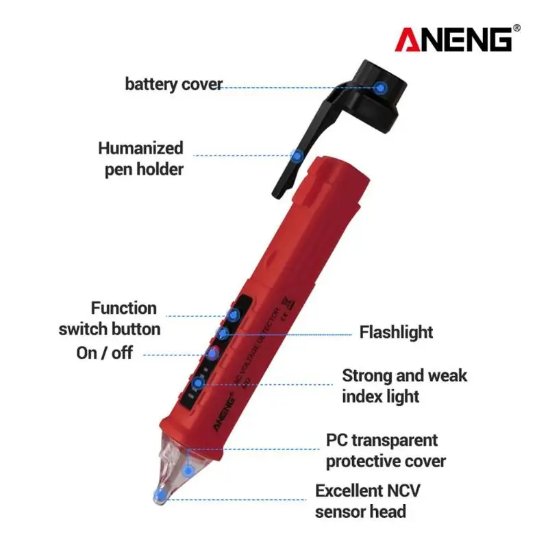 Зонд тестера вставляется в гнездо питания или рядом с живым проводом. Когда тестер обнаруживает сигнал напряжения переменного тока, индикатор индукционного напряжения мигает. В соответствии с обнаруженной силой сигнала тестер загорается соответствующим индикатором интенсивности сигнала (высокий, средний и низкий). В то же время, улей издает сигналы тревоги различных частот. При индукции к сигналу напряжения переменного тока индикатор интенсивности сигнала L (низкий) мигает; При индукции к более высокому сигналу напряжения переменного тока индикатор интенсивности M (средний) длинный; при индукции к высокому сигналу переменного напряжения индикатор интенсивности H (высокий) мигает 3 лампы.
