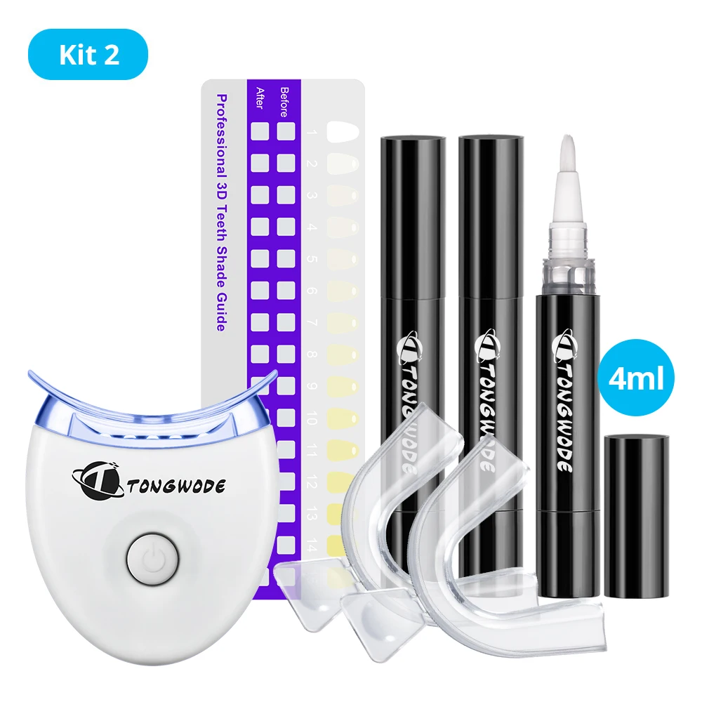 Комплект 1 1x Отбеливание зубов Светильник 3x2 мл Вращающаяся ручка для отбеливания зубов 1x шкала оттенков 1x Руководство пользователя 1x роскошная цветная коробка Комплект 2 1x Отбеливание зубов Светильник 3x4 мл Вращающаяся ручка для отбеливания зубов 1x шкала оттенков 1x Руководство пользователя 1x роскошная цветная коробка