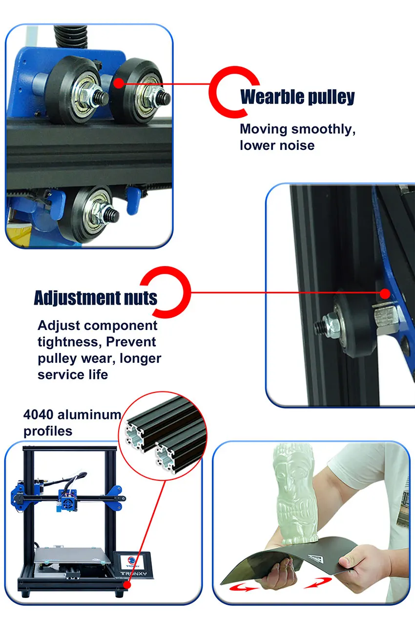 Максимальный размер печати: 255*255*260 мм (XY-2 PRO titan Размер печати: 255*255*245 мм) Цвет печати: однотонный Принт Толщина: 0,1-0,4 мм (по желанию) Точность позиционирования: X/Y: 0,0125 мм Z: 0,02 мм Размер насадки: 0,4 мм Поддержка материала: PLA, ABS, HIPS, WOOD, PC, PVC(XY-2 PRO titan также поддержка: TPU) Материал машины: алюминий и металл Машина Вес: 8,5 кг Вес упаковки: 11 кг Размер упаковки: 495x460x220мм Размер машины: 460x450x510мм Экран: 3,5 Полноцветный Сенсорный экран Экран Авто Уровень: включен Входная мощность: 110 В/220 В Выходная мощность: 24 В 360 Вт Аутентификация: CE FCC Программное обеспечение для нарезки: слайсер Tronxy Формат файла: STL, OBJ, DAE, AMF, G-Code Программное обеспечение: Repetier-Host, Cura Операционная система: Windows/MacOS/Linux Подключение: USB интерфейс, tf-карта Сбой питания: включен Детектор износа нити: в комплекте