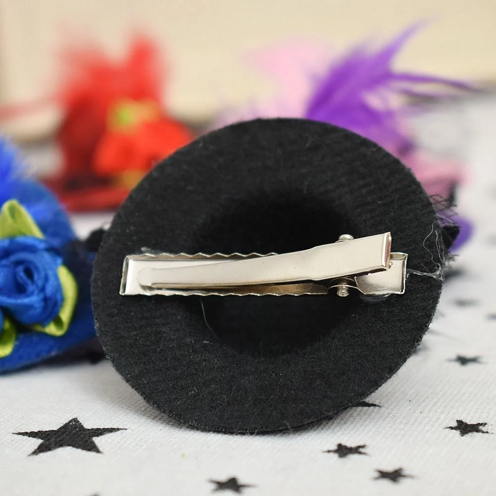 Абсолютно новый и с надежным качеством Маленькая шляпа в форме Матовый, двойные цветы и перья украшение Сетчатая ткань и бархатные материалы Размер крышки около 5,5 см, размер зажима около 4,5 см 5 цветов на выбор Для девочек, выступления на сцене и фестивали В комплект входит: заколка для волос 1 шт.