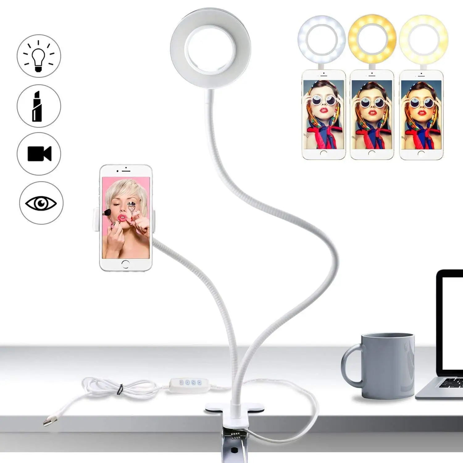 2 в 1 держатель для мобильного телефона с селфи-кольцом светильник для прямого эфира, шоу в реальном времени, видеовызова, макияжа. Идеально подходит для YouTube, Facebook.live musical.ly, live.me, live.ly, twich, Blog, twitter и т. Д. Вы можете установить его под разными углами с подставкой на мобильный телефон. Он осветит и смягчит ваши особенности. Больше не нужно беспокоиться о раздражающих тенях на лице, когда снимаете селфи. С этим кольцом светильник, просто показать вашу красивую селфи в социальных сетях в тех случаях, когда вы хотите. Безопасный Применение Экологичный светодиод безопасен и может защитить ваши глаза. Крепление для зажима телефона очень прочное и мягкое, поэтому оно не оставляет следов или следов на том, что вы его зажимаете. Выключатель очень прост в использовании, и вы можете управлять светильник, сделать его более или менее диммером в зависимости от того, как вы хотите. Держатель для телефона с поворотом на 360 градусов Поворотный шар и дизайн с гусиной шеей, идеально подходят для идеального просмотра. Ручной зажим на столе/кровати и поворот под любым углом, чтобы освободить руки, наслаждайтесь легким моментом, который приносит вам. Это раздражает, когда вы не можете найти идеальный светильник, который вы хотите? Это больше не проблема Когда светильник включен (режим 3 цветов, регулируемая яркость 10), вы можете использовать светильник от самого разного до самого яркого через кнопку переключения. Остановитесь, когда светильник идеально подойдет вам. Вы больше не в пределах лимита. Технические характеристики: Материал: углеродистая сталь, металлическая Резьбовая труба, ABS Светодиодный индикатор: 12 холодных + 12 теплых, 24 в общей сложности Питание: USB Ёмкость: 12 Вт Применимые модели телефонов: Экран шириной меньше, чем 3,4 дюймов Длина кабеля питания: 65 дюймов Кольцевой светильник, высота стойки: 25,2 дюйма Высота держателя мобильного телефона: 13,8 дюйма Поддерживает базовый Диапазон зажима: не познее толщина 2,7 дюймов Посылка включает в себя: * 1 светодиодный кольцевой светильник для селфи с держателем для мобильного телефона