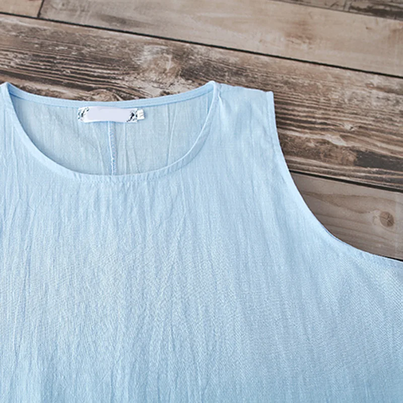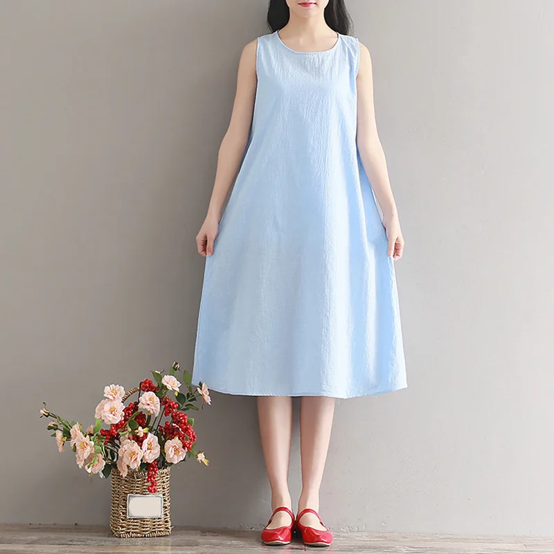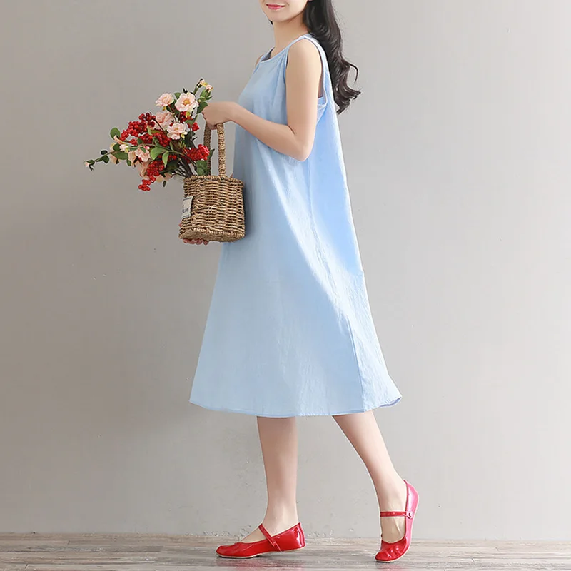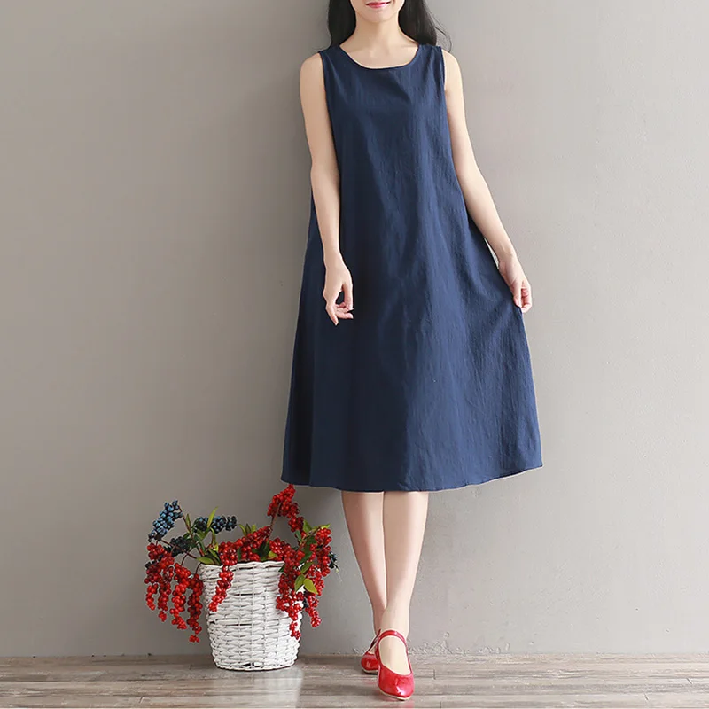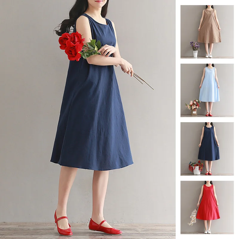 * Описание товара: новое летнее женское свободное платье без рукавов средней длины; хлопковый льняной Сарафан
