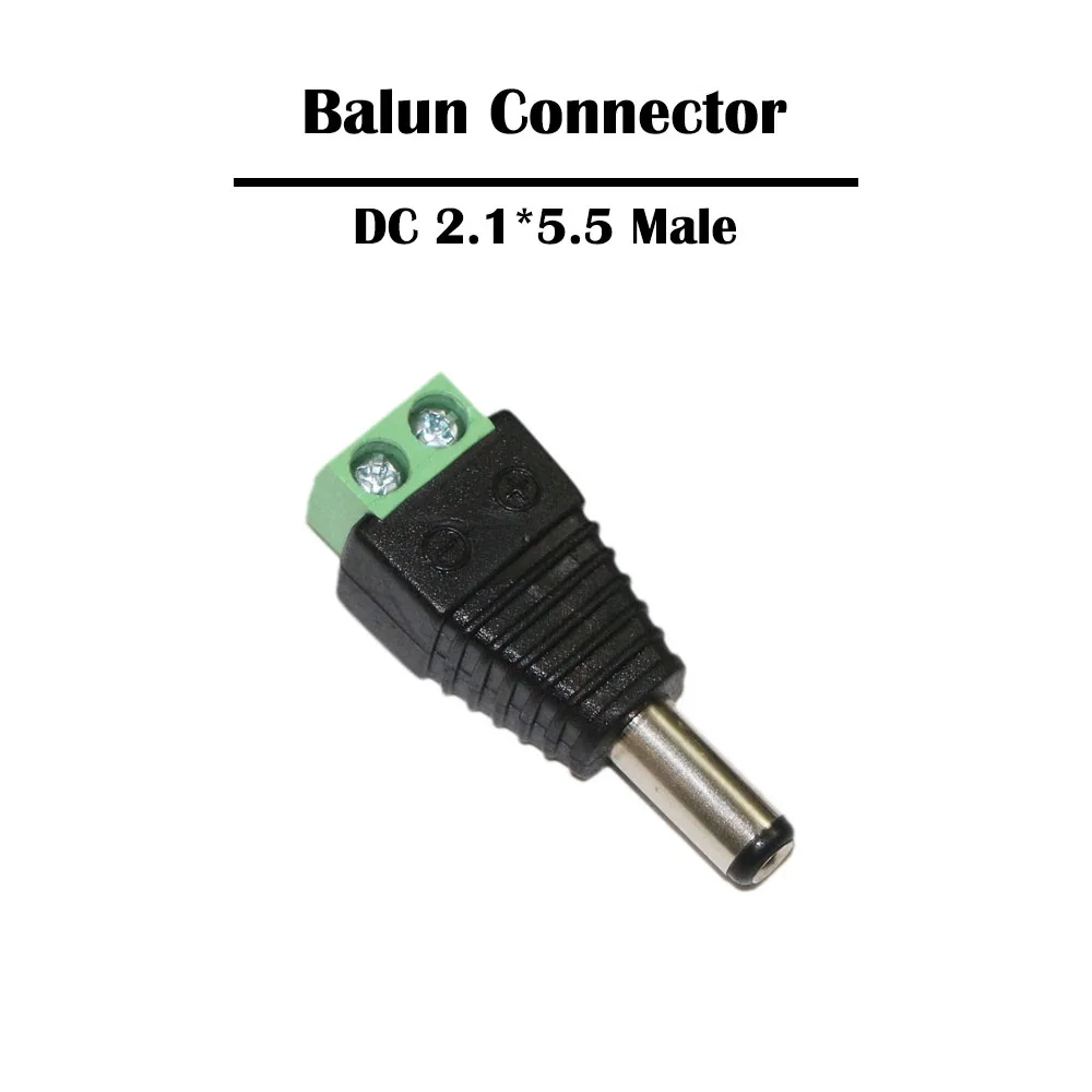 Это 2,1x5,5 мм Мощность разъем имеет одну Мощность разъема Вилка папа для постоянного тока на другой конец терминал для камеры видеонаблюдения.
