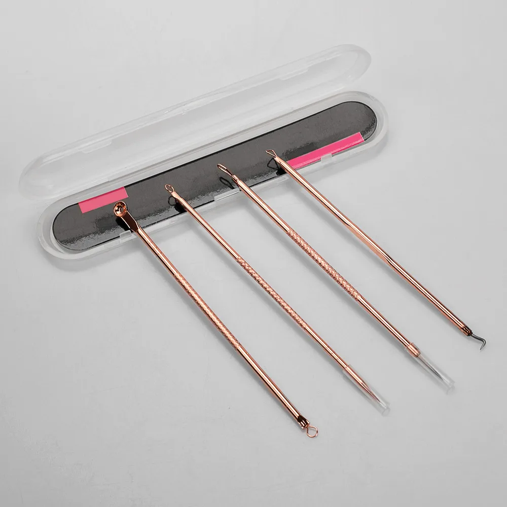 4 шт. экстрактор угрей в розовых золотых черных точках очиститель для удаления прыщей иглы Набор черных пятен инструмент для очистки пор