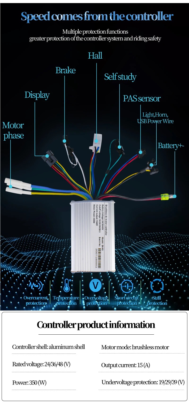 24V 48V 250W 350W регулятор бесщеточного двигателя блок с ЖК-дисплей Дисплей для скутера e-велосипеда контроллер двигателя Функции: ЖК-дисплей Ebike с электронным велосипедным контроллером, контроллер 36 в 350 Вт 24 В 48 в, Бесщеточный контроллер 350 Вт, батарея мощность пробег скорость времени USB зарядка телефона, ЖК-дисплей для электрического велосипеда, регулятор дроссельной заслонки 3 в 1, аксессуары для электровелосипедов