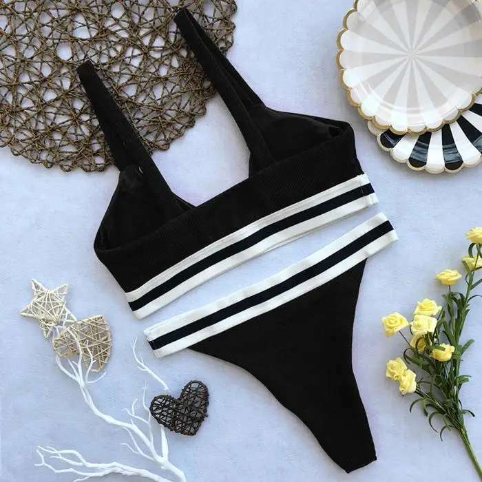 Материал: нейлон Цвет: черный, красный, белый Воротник: бретельки с v-образным вырезом Длина рукава: без рукавов Стиль: бикини купальники Дизайн: контрастный цвет, комплект из двух предметов Узор: в полоску Pad Тип: с подкладкой Тип фиксации: бесконтактная Тип застёжки: пуловер Тип талии: низкая талия Сезон: лето Подходит для Стиль: тонкий Повод: бассейн, Резорт, пляж, аквапарк Этот купальник-бикини отлично показывает вашу фигуру. Трехточечный дизайн, модный и эрогенный. Полоски контрастного цвета делают вас более привлекательным. Предметы первой необходимости для морского отдыха и летнего плавания. Подходит для женской одежды. Содержание упаковки: 1 женский купальник бикини Размер: 3 размера s (S/M/L) доступны для следующего списка. Пожалуйста, позвольте 1-2 см отличаться из-за ручного измерения, спасибо (все измерения в см и пожалуйста, обратите внимание на 1 см = 0,3937 дюйма)