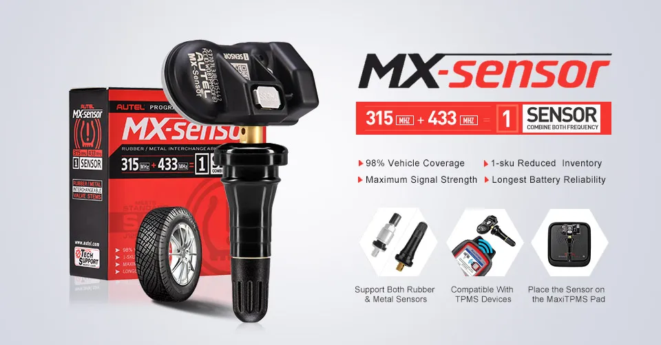 Autel mx-сенсор 2 в 1 (315 + 433 МГц), как программируемый универсальный датчик, оснащенный зажимами и защелками, которые являются умными и эффективными специально разработаны для замены сенсора с максимальным покрытием приложения, простоты использования, OE-level fit, производительность и надежность, Поможет потребителям экономить стоимость диагностических работ и значительно повысить эффективность ремонта.