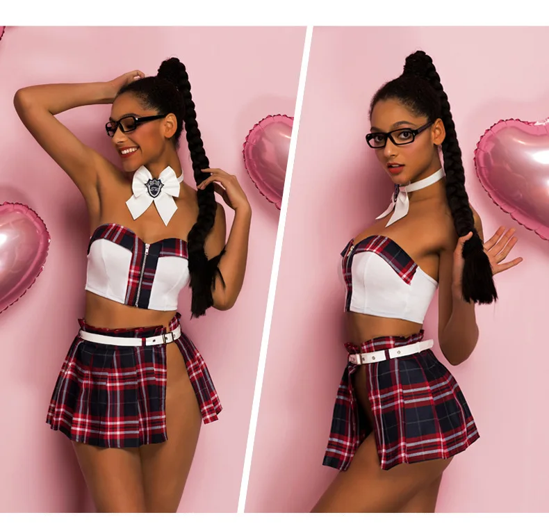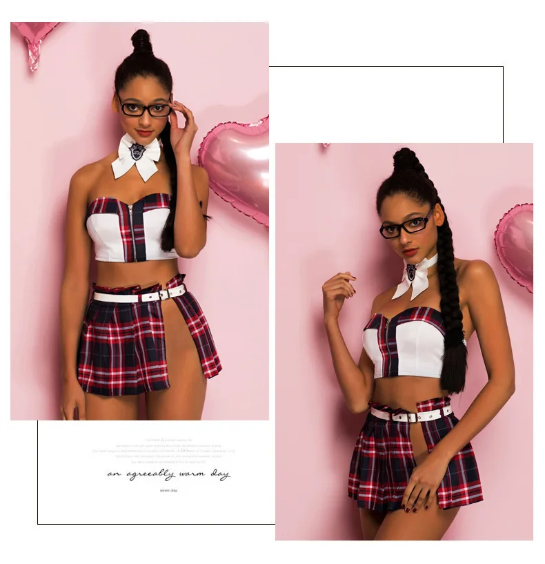 Материал: полиэстер Размер: свободный размер Один набор включает в себя: галстук-бабочка, оправа для очков, пояс, Т-образные топы, юбка