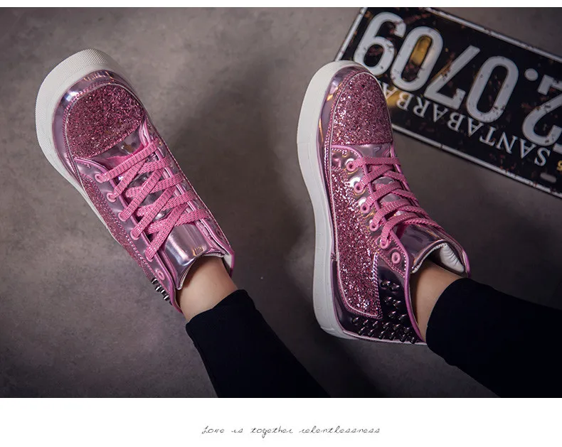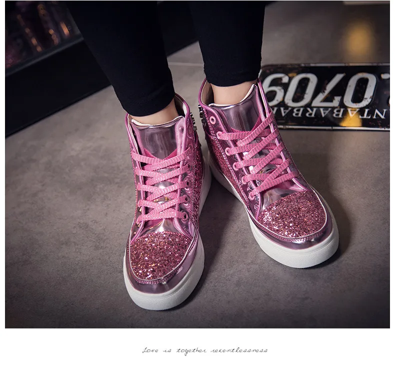 Описание товара:Розовые парусиновые кроссовки на платформе; Модная женская обувь из искусственной кожи с высоким берцем; Повседневная обувь с блестками; Женская обувь; Chaussures Femme Calzado Mujer