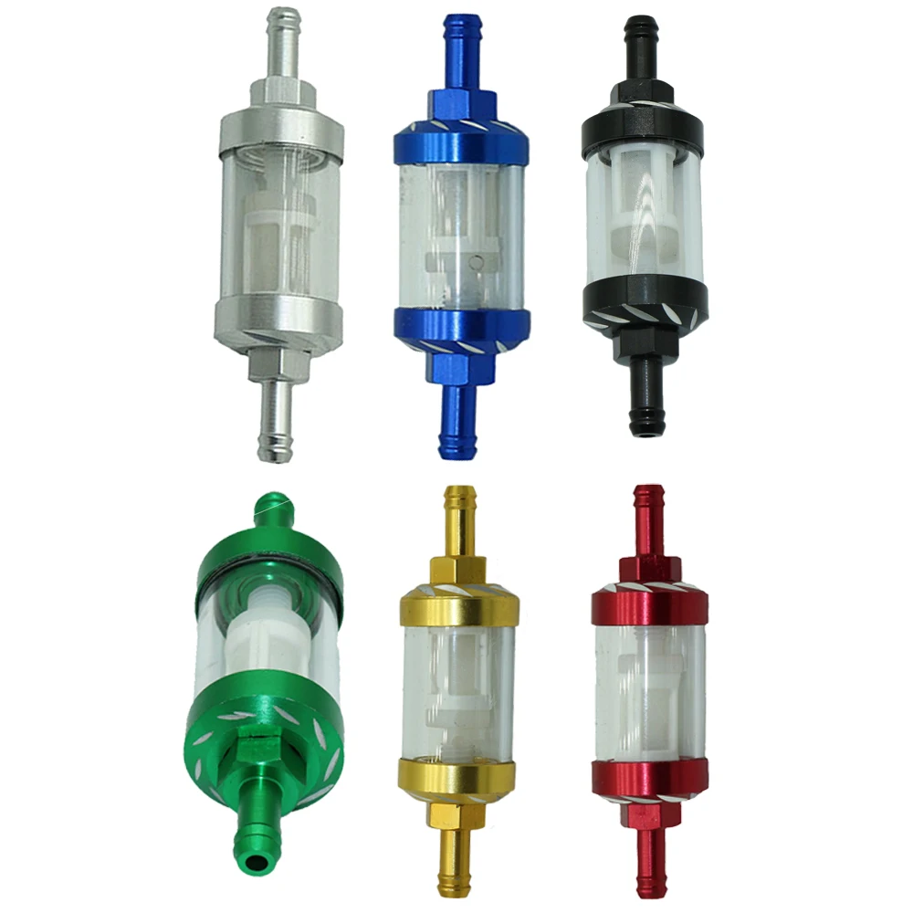 1 шт. топливный фильтр для мотоцикла 6 мм Универсальный хромированный и моющийся фильтр из стекла для топлива, бензина, дизельного топлива, встроенный фильтр для шлангов 5/16 для Harley