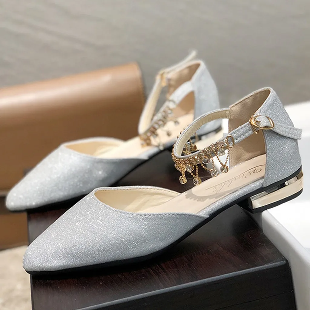 Женские летние повседневные модные сандалии с острым носком на плоской подошве с пряжкой и жемчугом