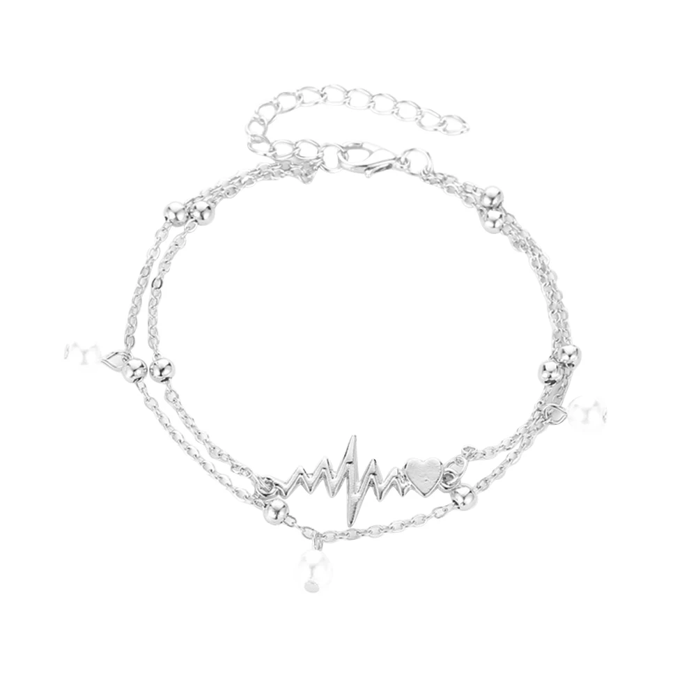 1 шт. модные очаровательные ножные браслеты с жемчугом сердцебиение кардиограмма 2 слоя ножные браслеты для ног цепочка для женщин и девочек