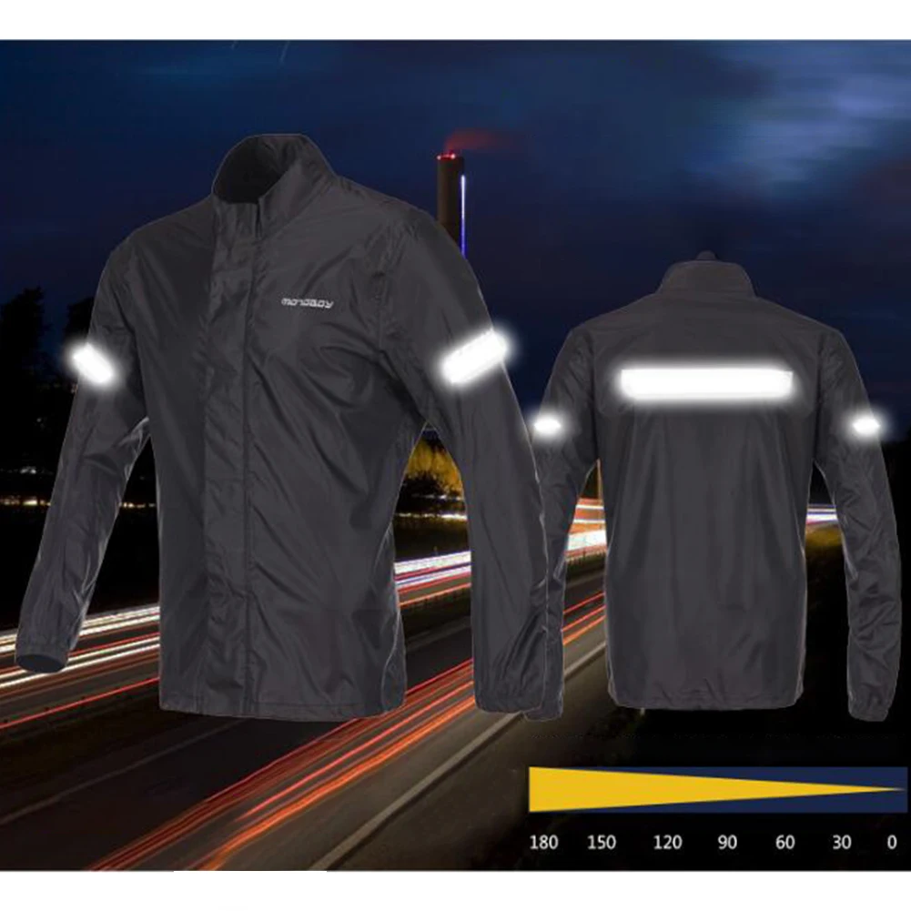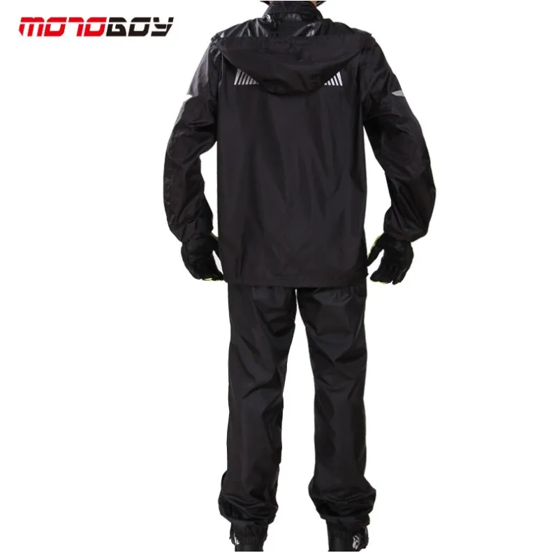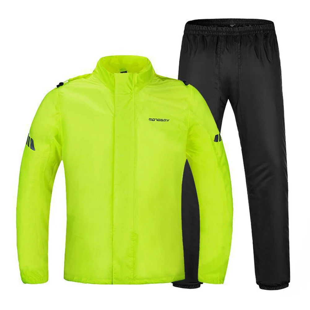 Дышащий, водонепроницаемый, ветрозащитный Водонепроницаемое нейлоновое ПВХ покрытие дождевика и брюк. Супер дышащая подкладка, удобная езда Регулируемый дизайн с капюшоном и шнуром Эластичная талия на завязках для правильного кроя Гладкие линии и тонкая работа, качественная молния Светоотражающая лента на куртке и брюках костюма от дождя, Безопасная езда в ночное время Подходит для рыбалки, езды на велосипеде, мотоцикле и других мероприятий на свежем воздухе