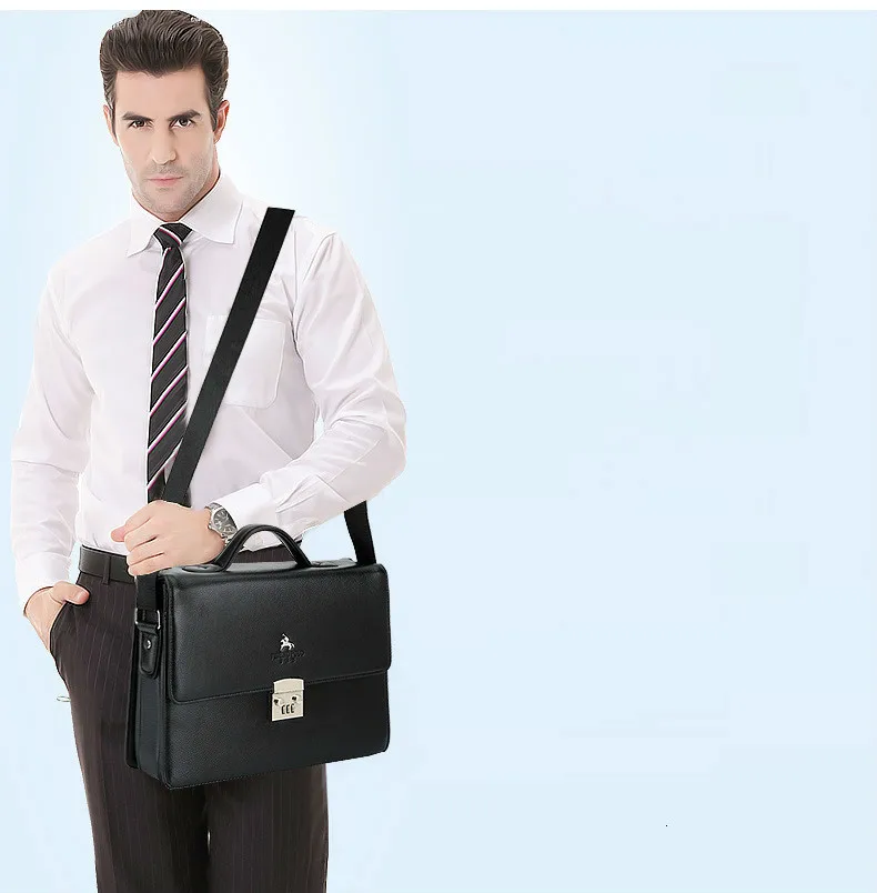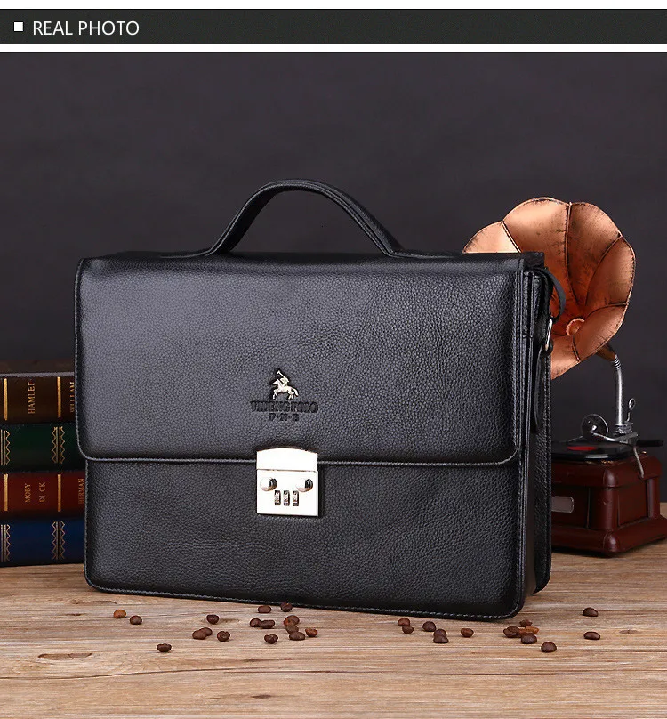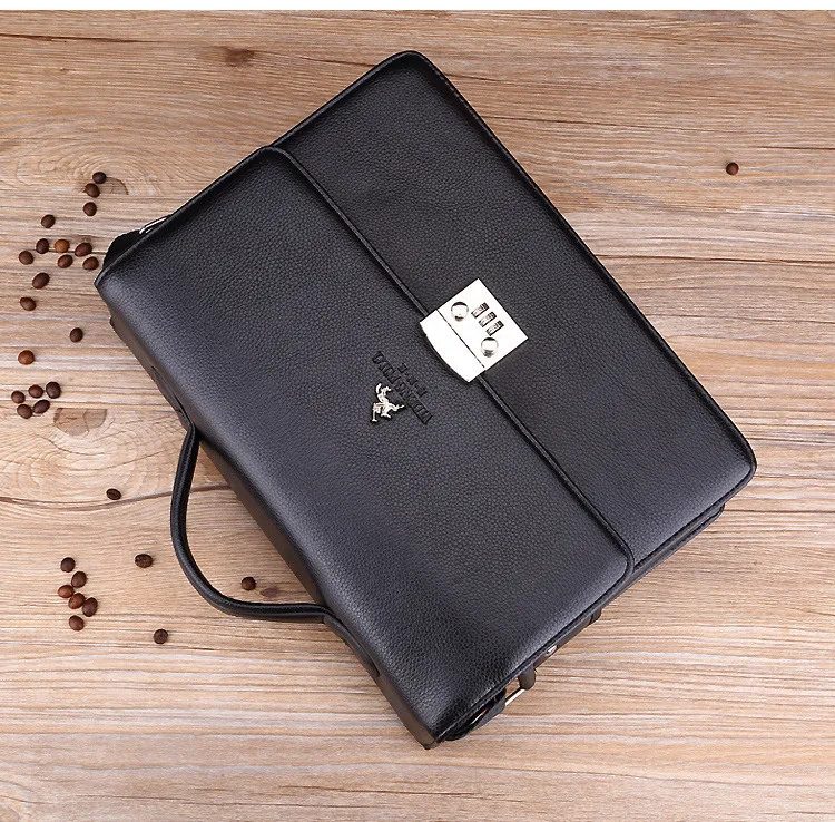 Деловая Роскошная брендовая мужская сумка с замком, черный кожаный портфель для мужчин, Одноцветный мужской портфель из органической кожи, сумка под платье, мужская сумка