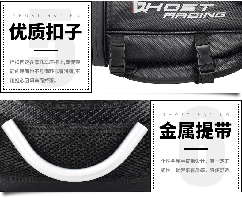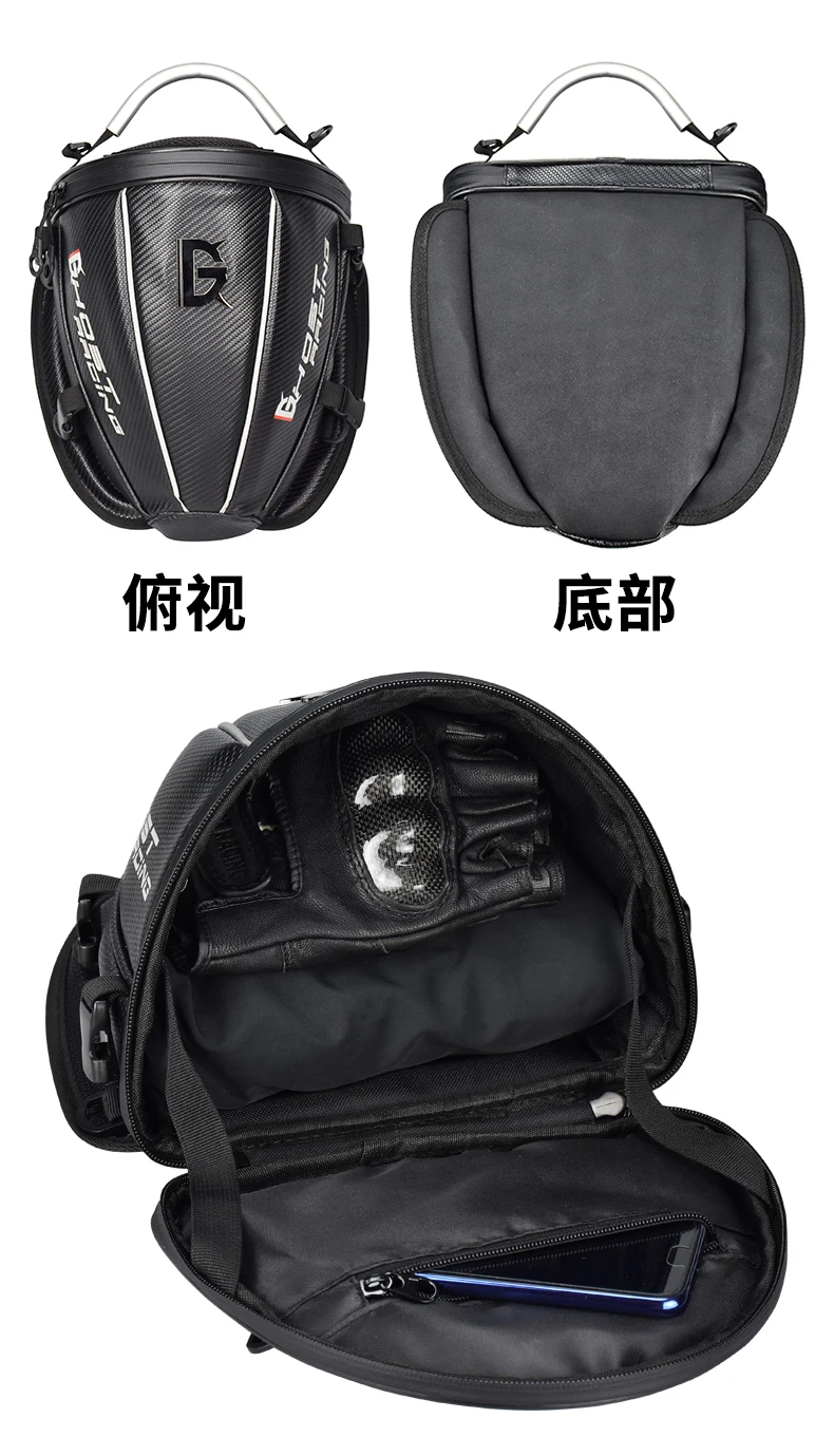 1. Высококачественный Оксфордский материал, прочный, устойчивый к разрыву, нескользящий и водонепроницаемый. Изготовлен из углеродного волокна, ткань очень текстурированная, легкая и грязеотталкивающая, водоотталкивающая, может держать ваши предметы в сухости во время вождения в дождь, и поставляется с дождевой крышкой, поэтому вам не придется беспокоиться о промокании, когда идет дождь.