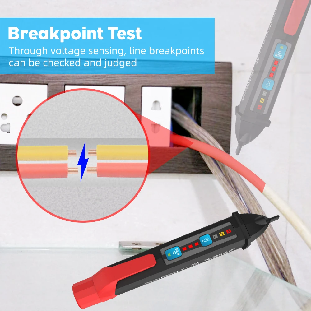 Тестер вольт соответствует CE CAT III 1000V/ CAT IV 600V, и он также оснащен звуковым и визуальным сигналом, чтобы защитить вашу безопасность. Примечание: Эта функция предназначена для обнаружения напряжения в слабом электрическом поле. С функцией NCV можно обнаруживать объекты без какого-либо напряжения переменного тока. В противном случае он будет звучать нормально. Функция регулировки чувствительности рассматривала слишком чувствительную проблему, так как другие тестеры напряжения. Когда тестер напряжения находится в ситуации по умолчанию, он может тестировать только 48-1000 В переменного тока, поэтому вам не нужно беспокоиться о шуме, когда вы положите его в сумку или храните его в том месте, которое находится рядом с линией. И он также может протестировать 12-1000 В переменного тока, регулируя кнопку «S»