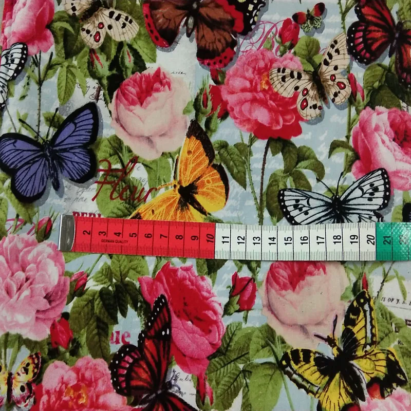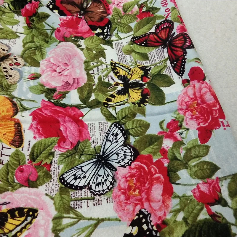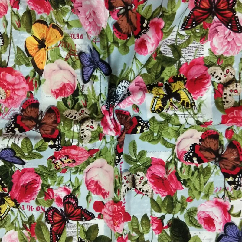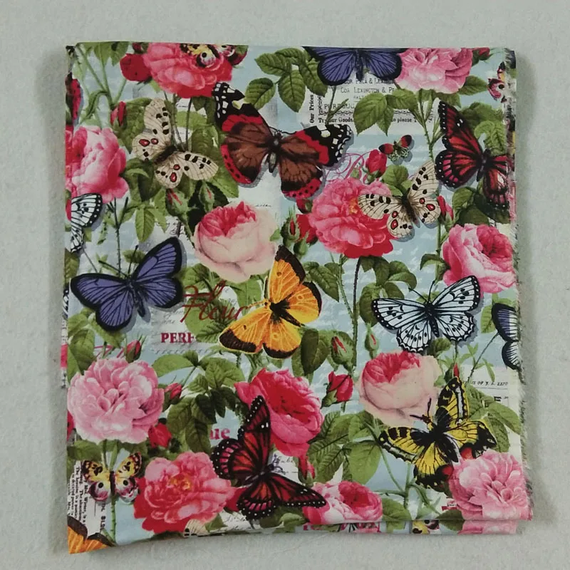 Brand New Cartoon Colorful Butterfly & Blooming Flowers Printed Cotton Fabric 50x105cm Floral Fabric Patchwork Cloth Bag Party Home Decoration