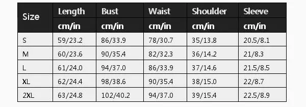 Size Length Bust Waist Shoulder Sleeve