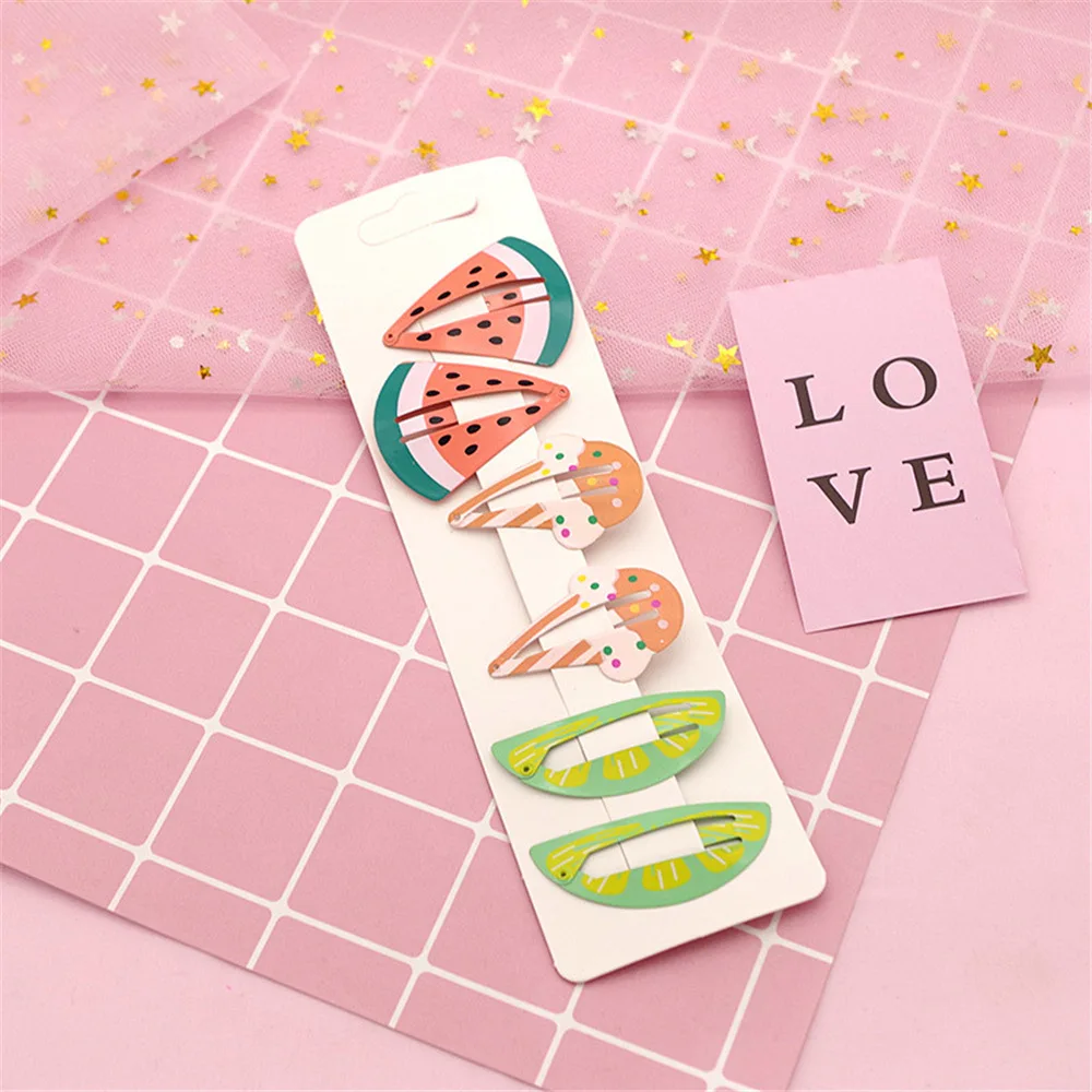 Абсолютно новый и высокого качества Печатные и Краски Фрукты русалки единороги Санта Клаус рождественские елки узоры Металлический Материал Сделано BB зажимы Длина 5,5 см прибл. 8 различных видов на выбор Посылка включает в себя: 6 Клипов BB