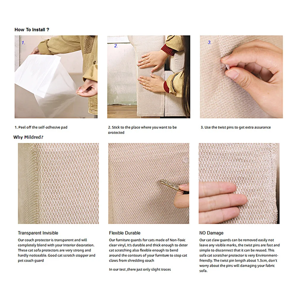 Этот продукт может защитить вашу домашнюю мебель от царапин кошачьих когтей. Держите кота от царапин на диване или другой мебели.
