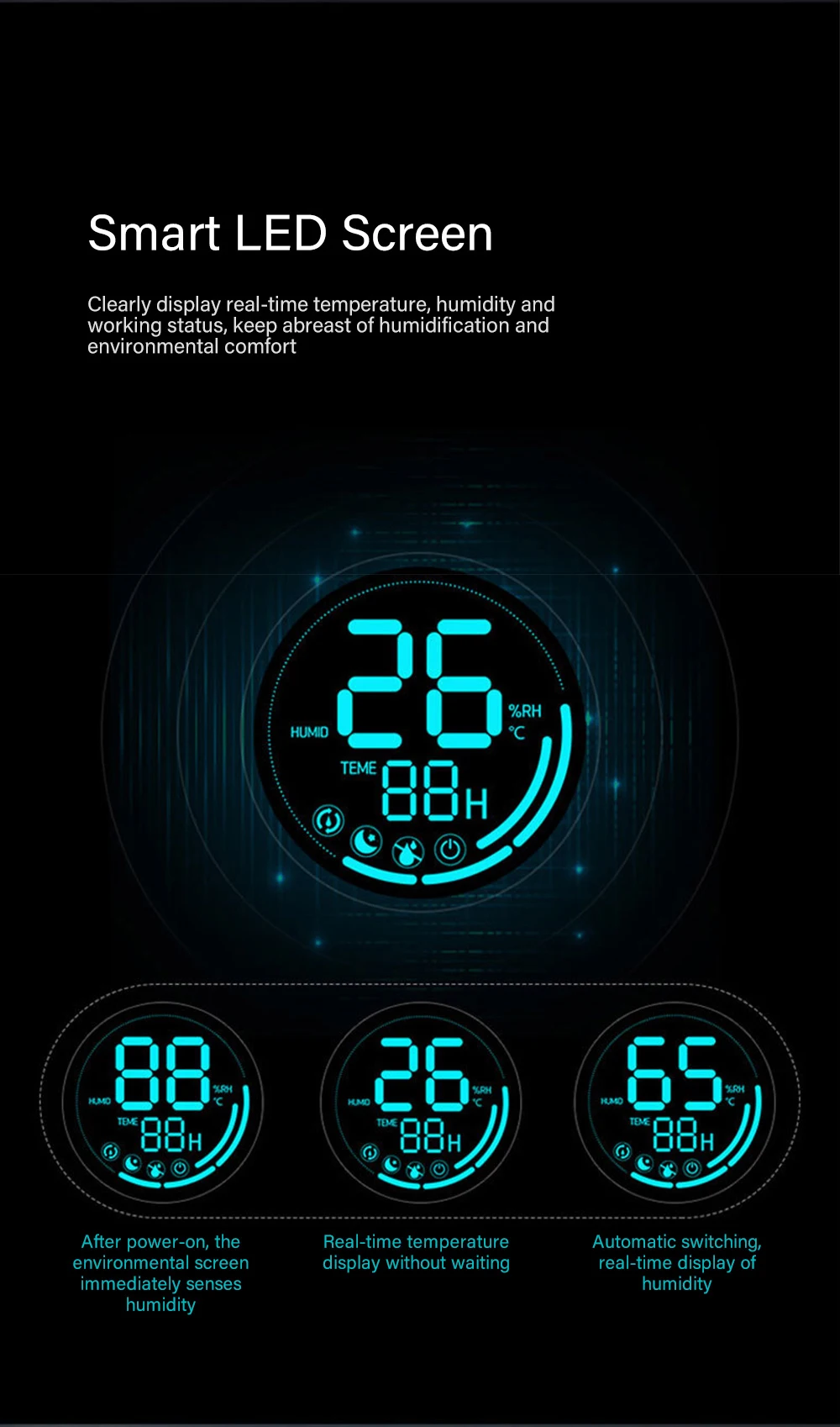 Запустите кнопку спящего режима, яркость на экране автоматически выключится, в стабильном состоянии влажности 60%, чтобы вы спали более сладко.