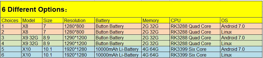 2. ЦП:X8 / X9 32G:RK3288 4 ядра до 1,8 ГГц;X10 / X9 64G:RK3399 шесть ядер до 2,0 ГГц