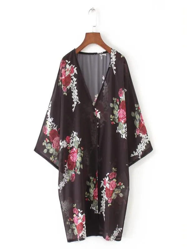 Женская шифоновая свободная шаль с принтом, кимоно, кардиган, накидка, блузка, пляжная одежда