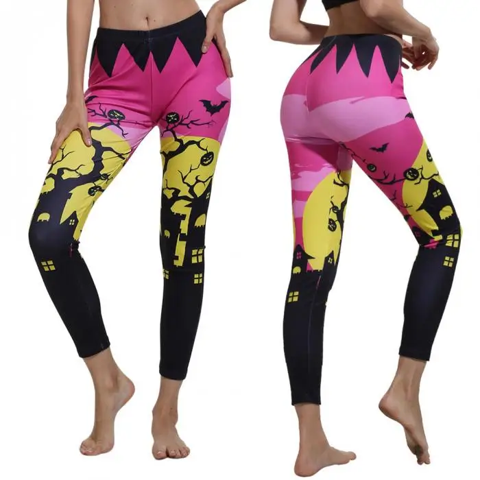 Женские штаны для йоги с принтом на Хэллоуин, спортивные штаны для бега, танцевальные леггинсы для фитнеса, KH889