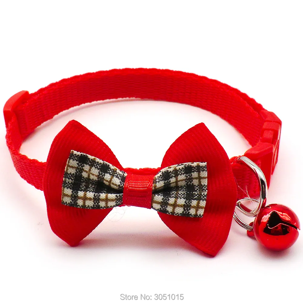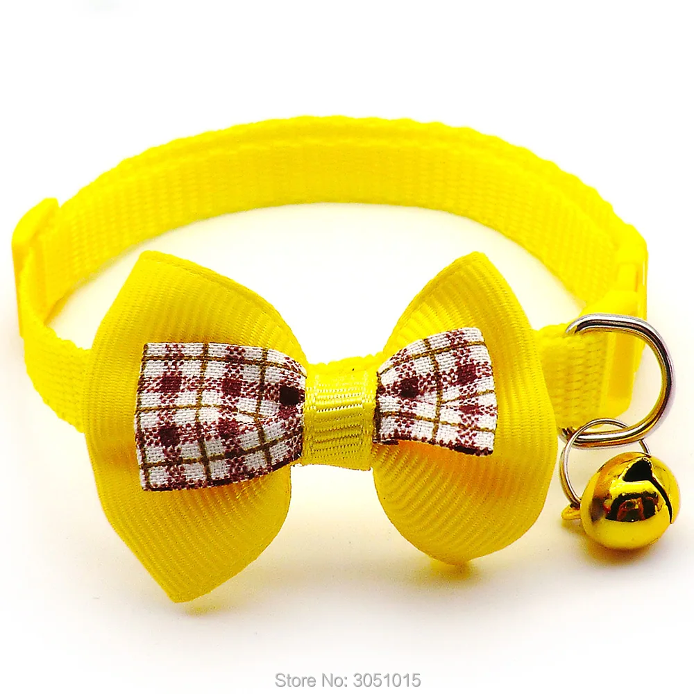 Оптовая продажа 100 шт Регулируемый полиэстеровый ошейник для собак ошейник для кошек с бантом ожерелье с колокольчиками ошейник для маленьких собак и кошек