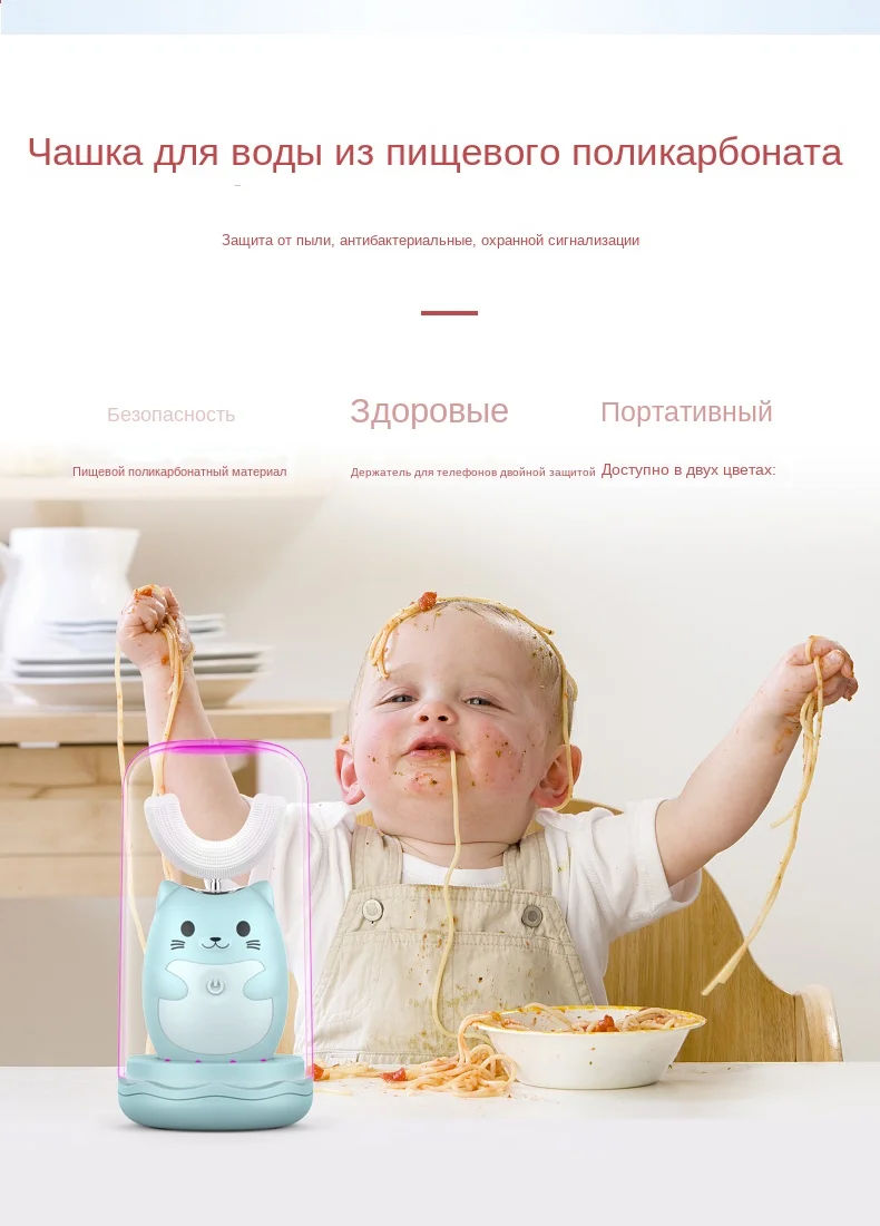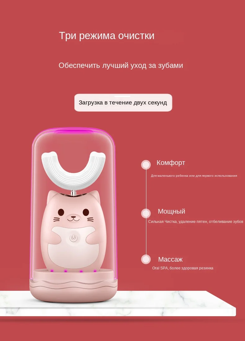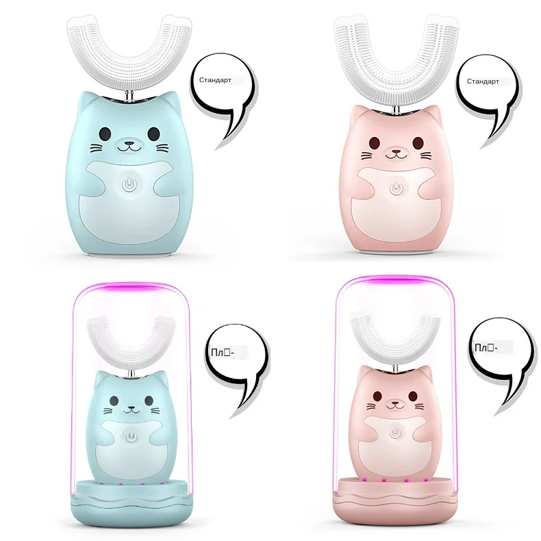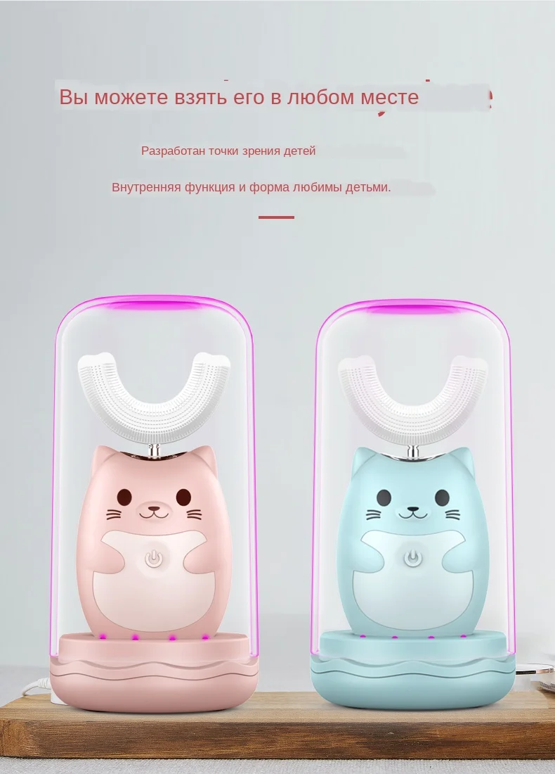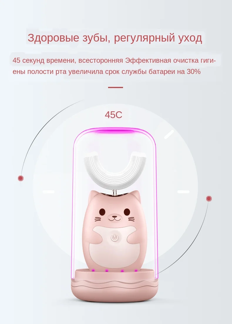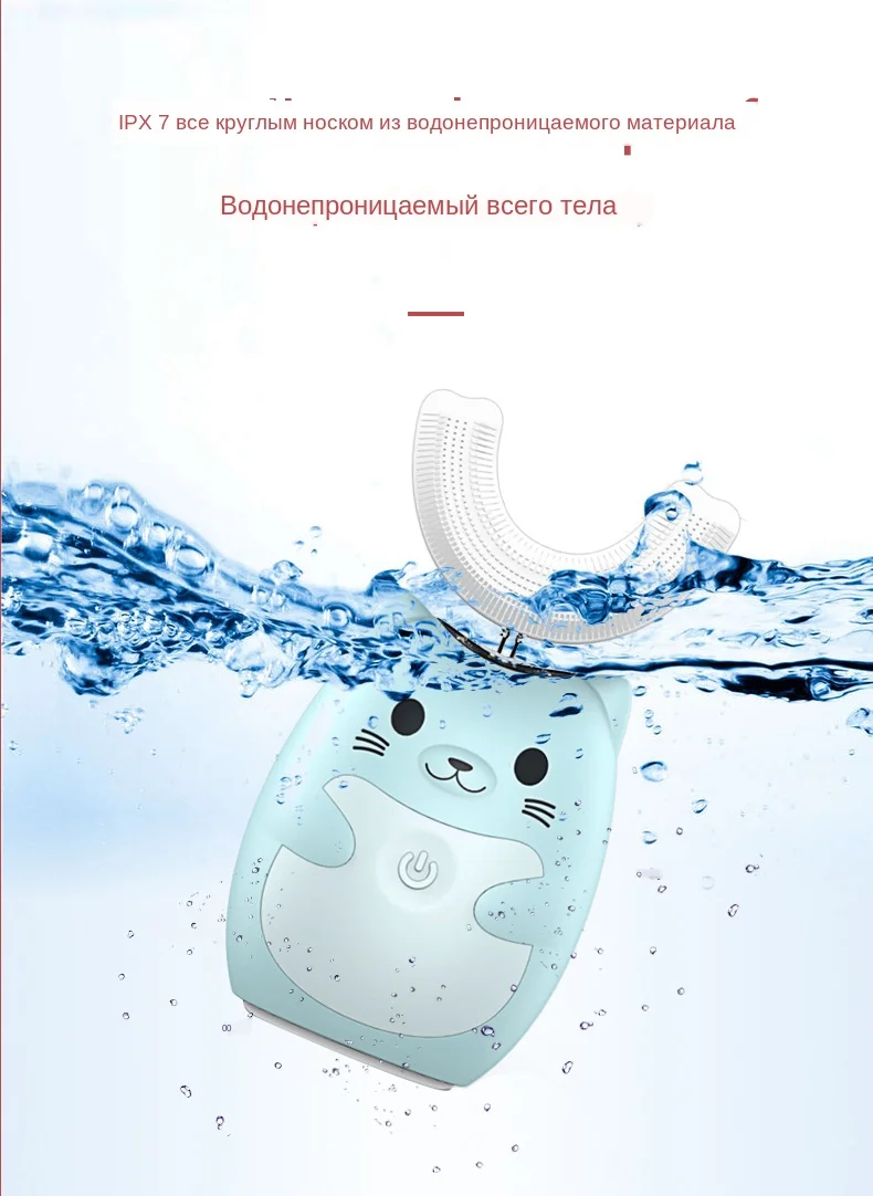 Новая детская звуковая автоматическая электрическая зубная щетка 360 градусов перезаряжаемая мультяшная милая детская u-образная ультра звуковая зубная щетка электрическая