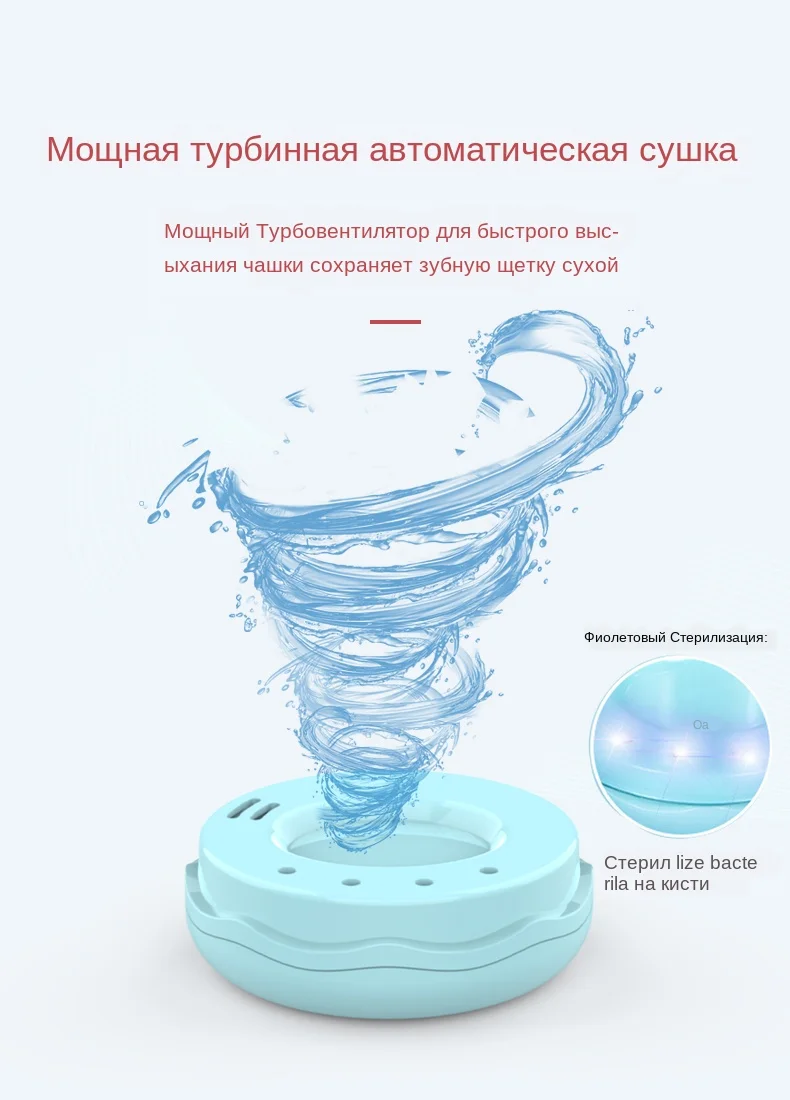 ❤ Автоматическая сушка : При зарядке маленький турбинный вентилятор сушит зубную щетку, сушит