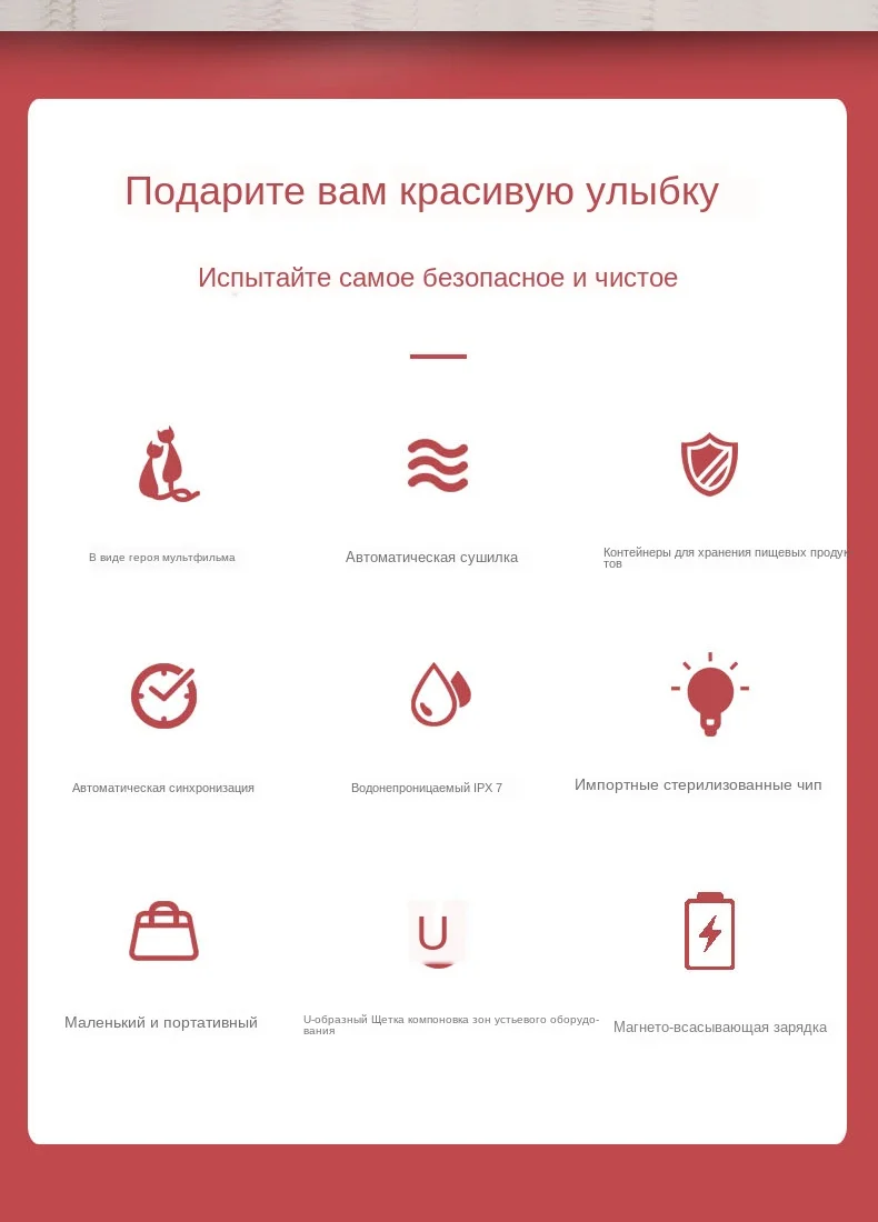 ❤Интеллектуальная УФ-дезинфекция: Магнитное зарядное основание. При зарядке УФ дезинфицирует зубную щетку, стерилизация