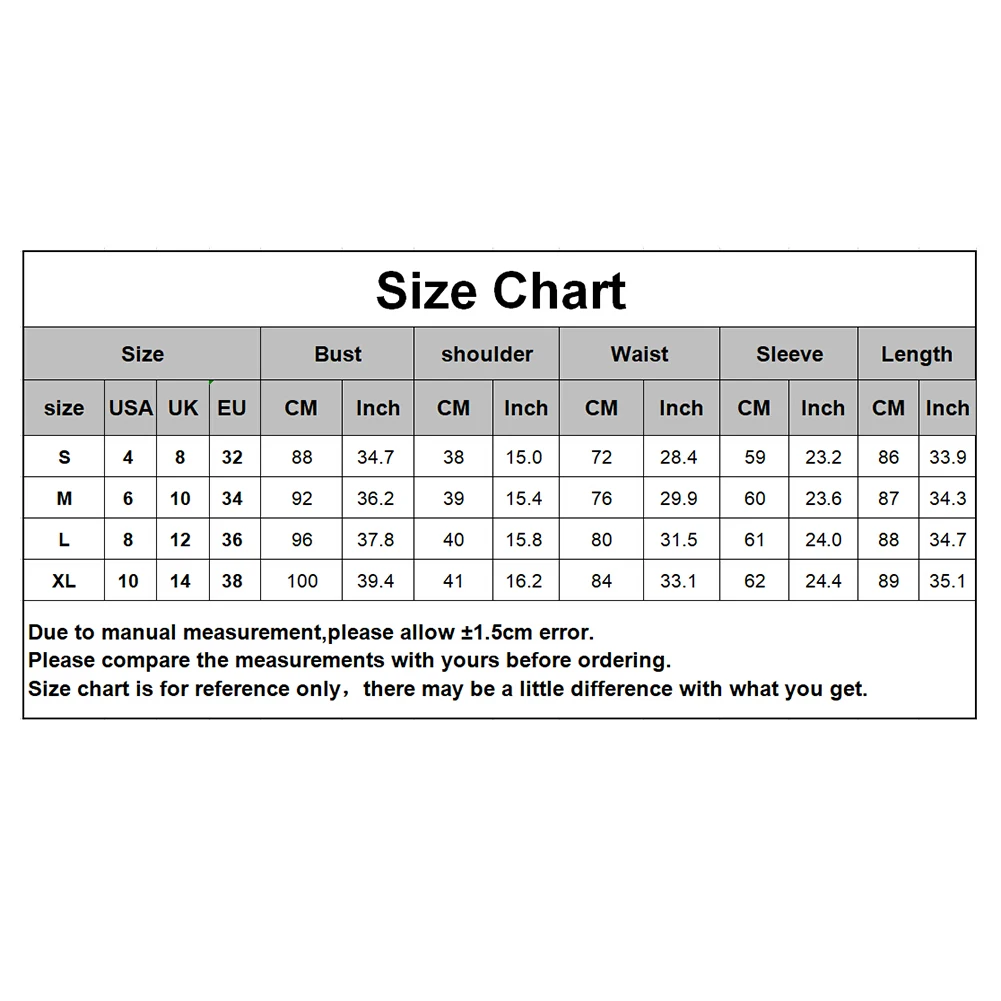[Наш Размер M] Обхват груди: 92 см/36,22 дюйма, ширина плеч: 39 см/15,35 дюйма, обхват талии: 76 см/29,92 дюйма, длина рукава: 60 см/23,62 дюйма, длина: 87 см/34,25 "(прибл.)