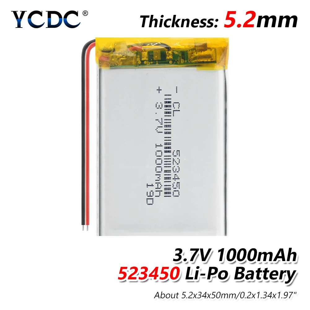 1/2/4 шт. прочный 523450 1000 мА/ч, литий-полимерные батареи перезаряжаемые 3,7 в 1000 мАч 523450 литий-полимерный аккумулятор для MP3 MP4 Светодиодная лампа