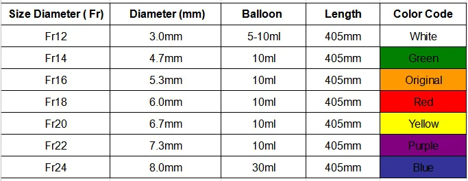 Fr16, fr18,fr20, fr22, fr24 Если вам нужен какой-либо размер, оставьте нам сообщение или свяжитесь со службой поддержки клиентов!